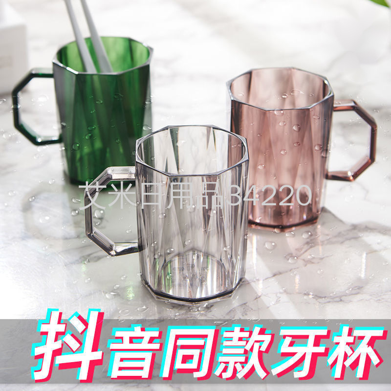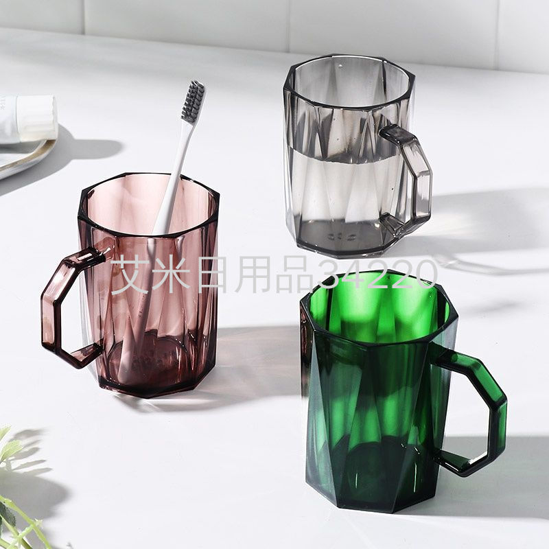 Gargle Cup Couple European Ins Style Household Wash Cup with Handle Transparent Plastic Toothbrush Cup