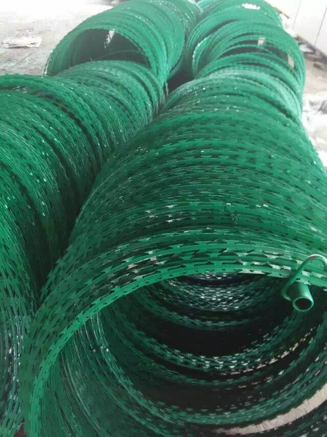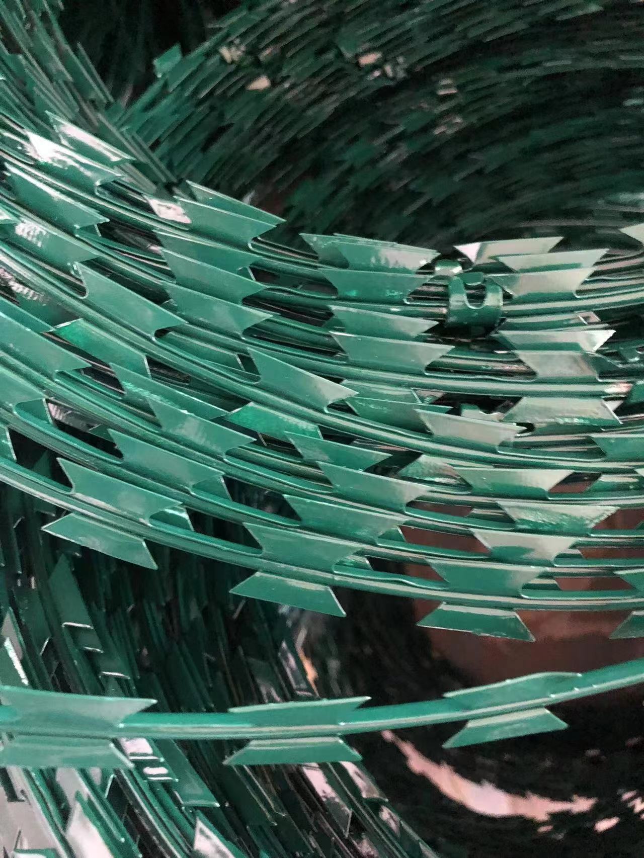 the diameter of blade barbed wire can be 30cm-120cm according to different purposes. The larger the diameter, the larger the space occupied, the harder it is to exceed, and of course, the higher the cost. According to the rules of the buckle, the blade barbed wire can be made into cylindrical or flat, and now it can be made into mesh plate and used directly as a fence. It makes people dare not climb, and it makes people stay away from each other.