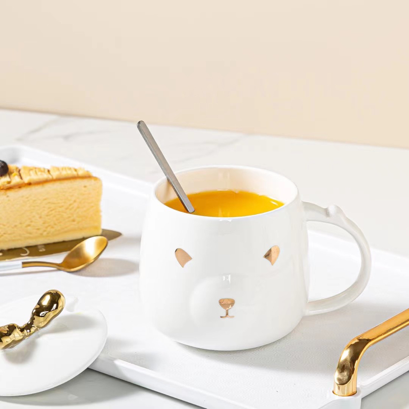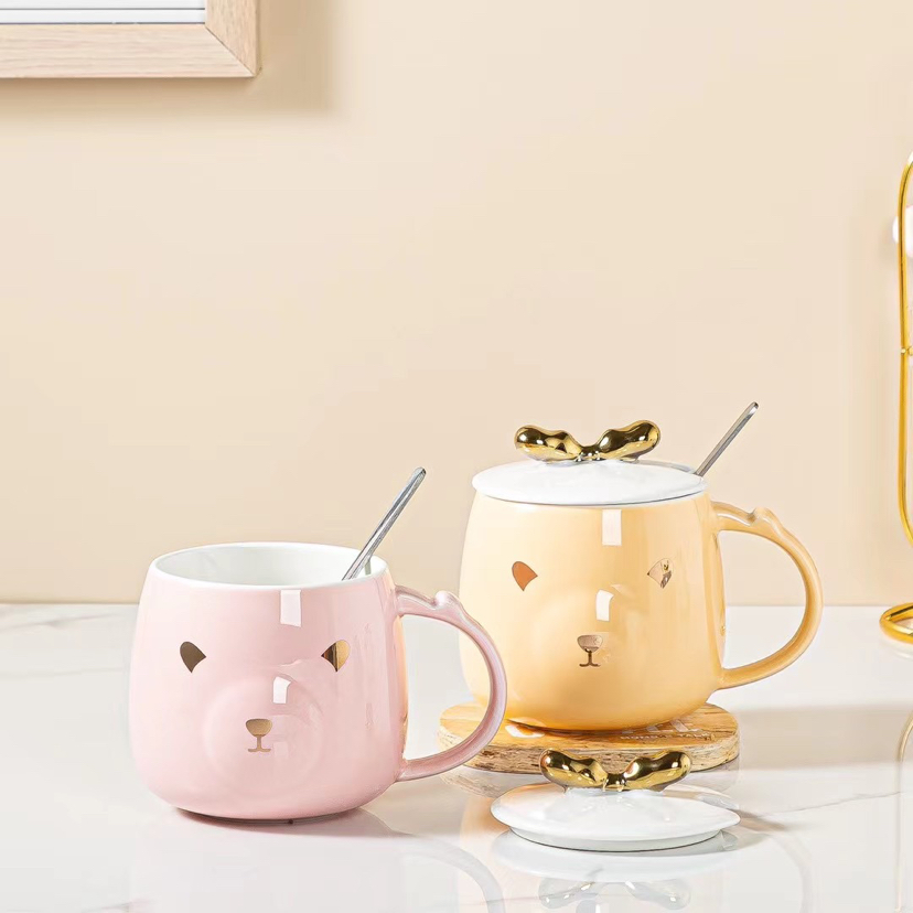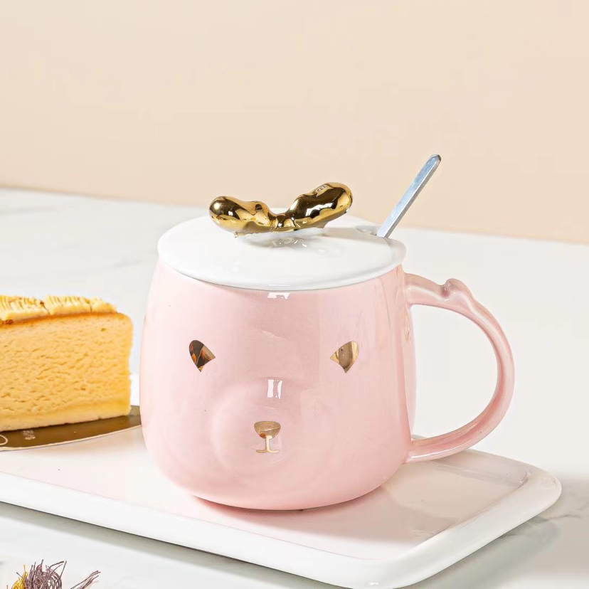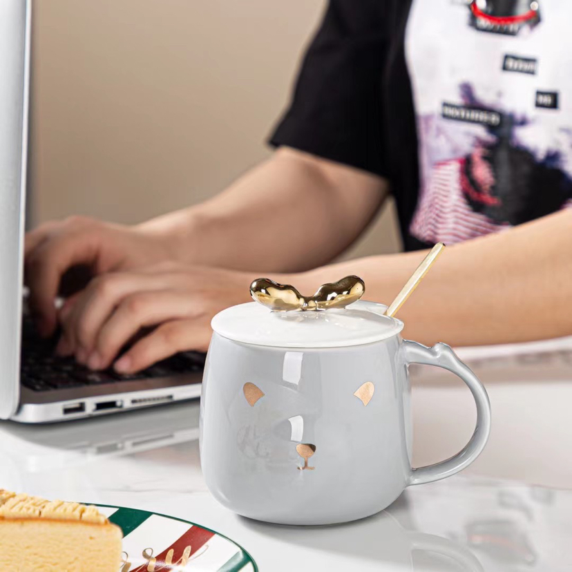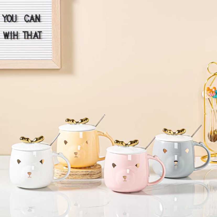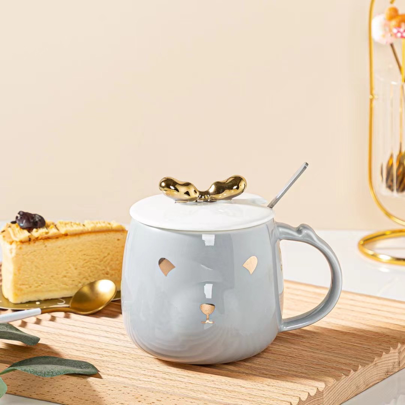 New Gold-Painted Deer Ceramic Cup Cartoon Mug Cup with Spoon Lid Coffee Cup