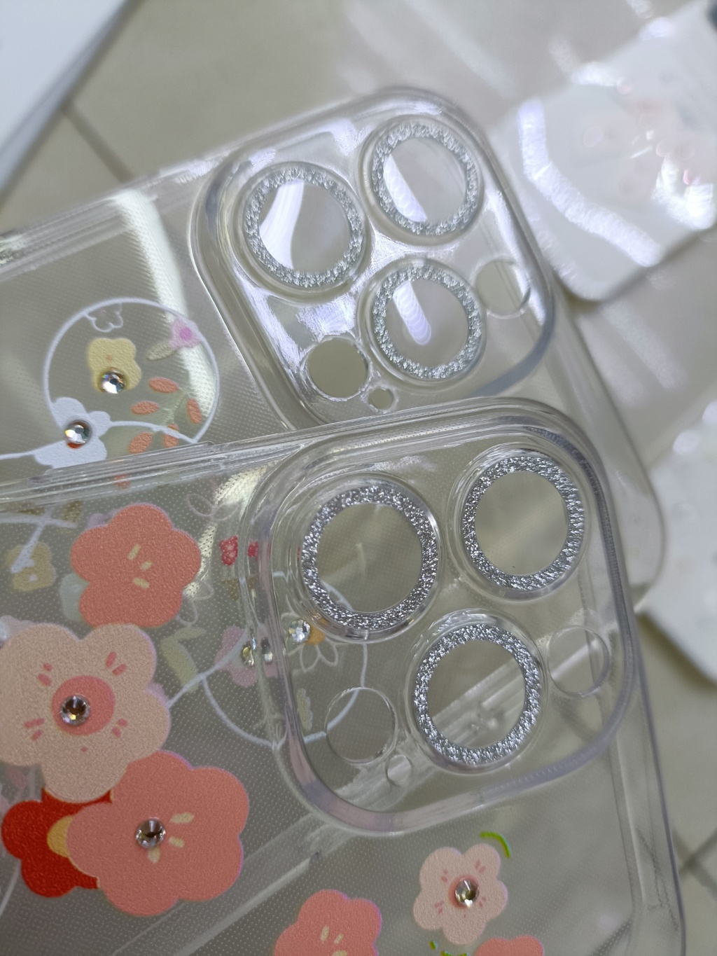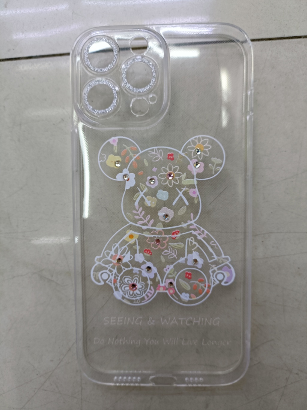 Lens Glitter Transparent TPU Picture Printing Spot Drill Phone Case