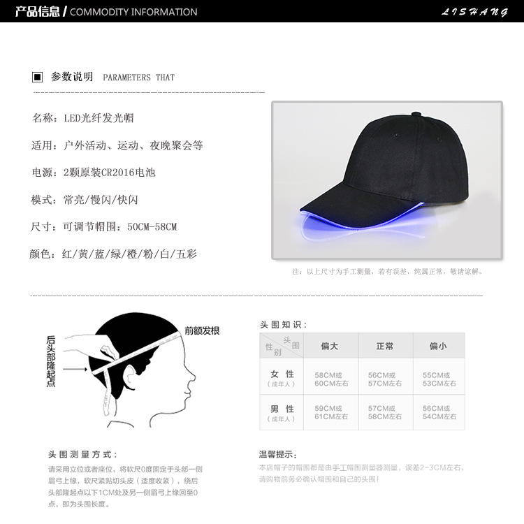 【商品名称】:LED Fiber Optic Glowing Hat