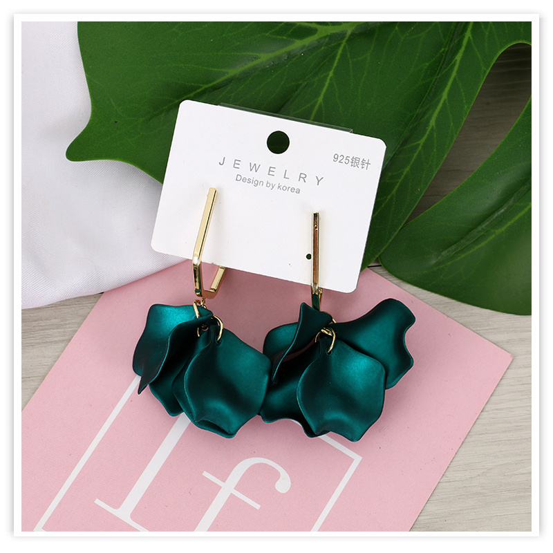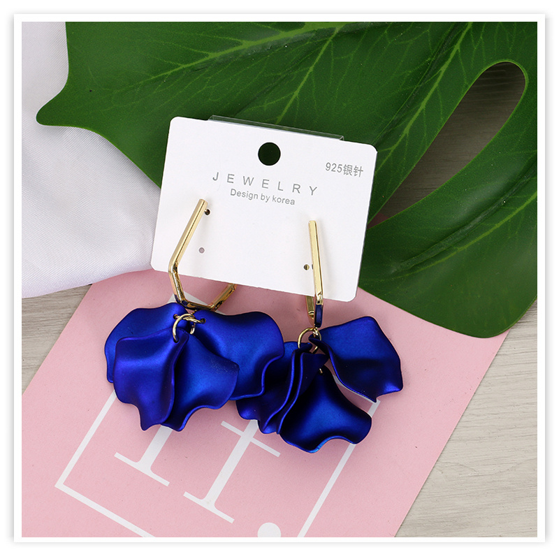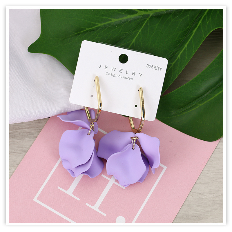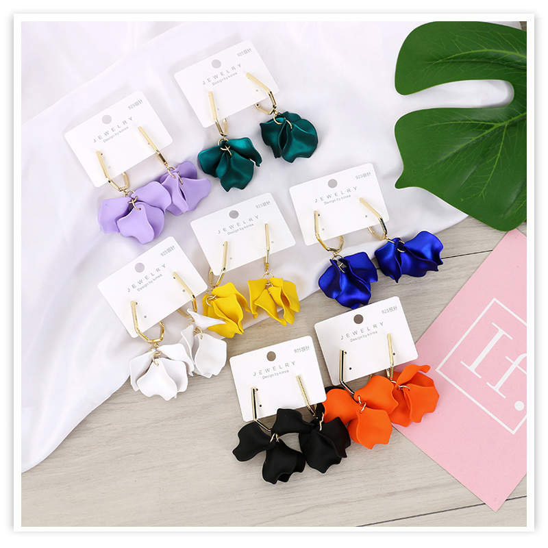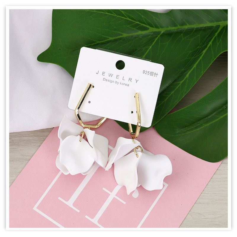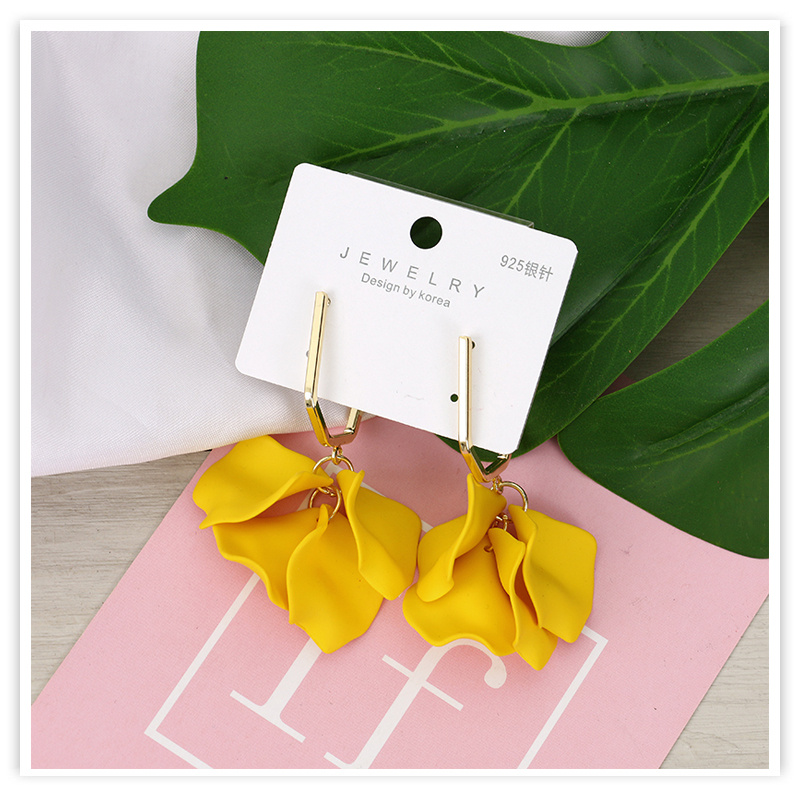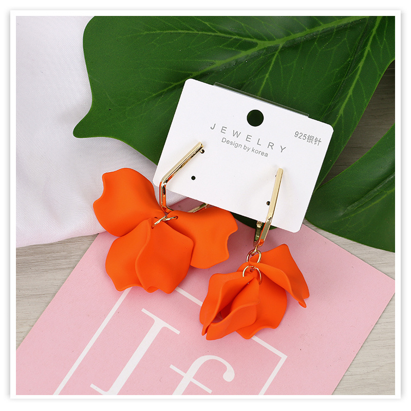 european and american fashion acrylic rose petals romantic dangle earrings elegant graceful sweet fairy 925 silver pin earrings