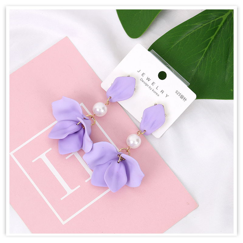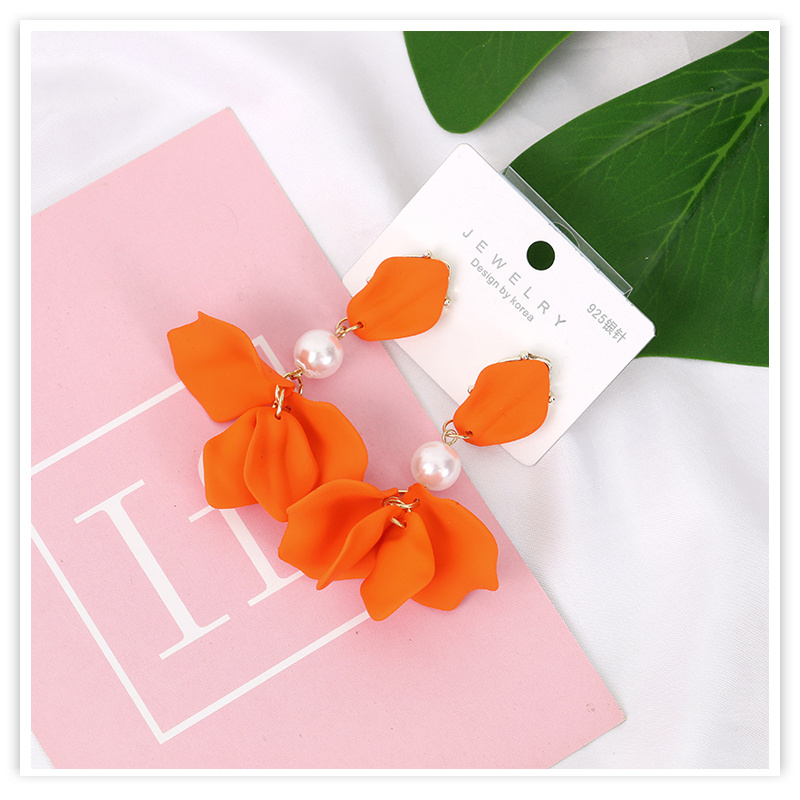 cross-border new arrival european and american style candy color petal long earrings acrylic spray paint matte color 925 silver pin earrings