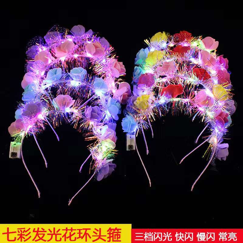 new stall night market hot selling children's colorful luminous garland headband light metal garland gold silk hair accessories
