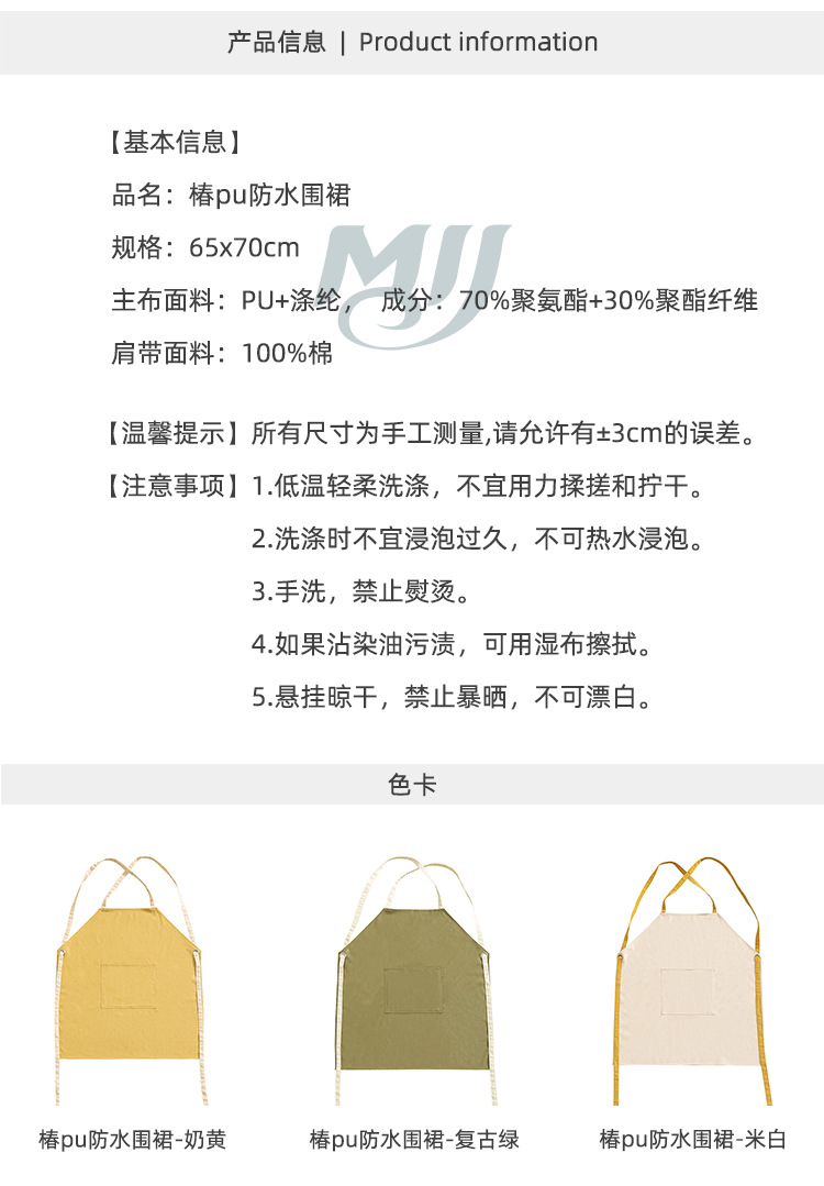 | Cucumber PU Waterproof Apron | 65x70 | Approximately 193g | Single PE Bag | 25x24x1cm | 150 pieces/units | 50x50x40 |
