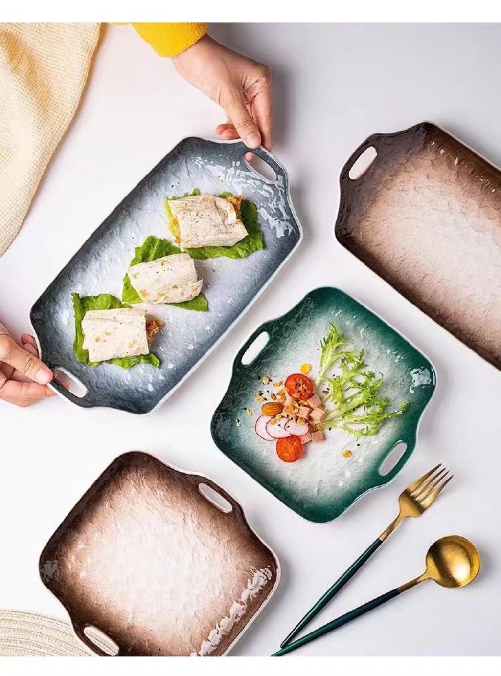 Color glaze pizza pan fish pan chicken leg pan grill pan cold dish pan steak pan salad plate handle plate color glaze grill pan
