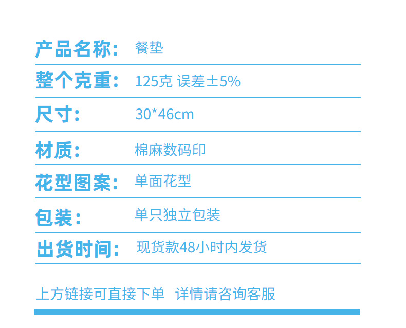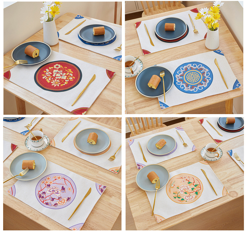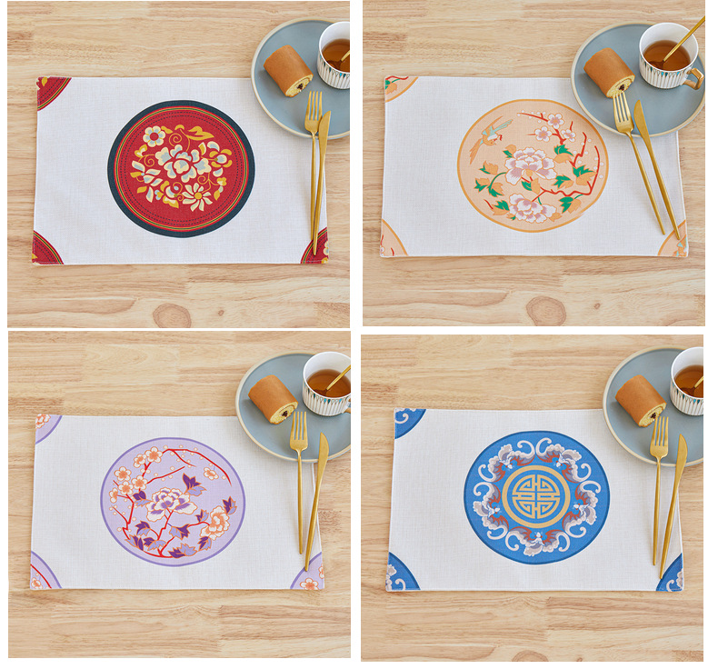 european-style cotton and linen placemat digital printing single-sided square western restaurant dining table cushion amazon cross-border in stock wholesale