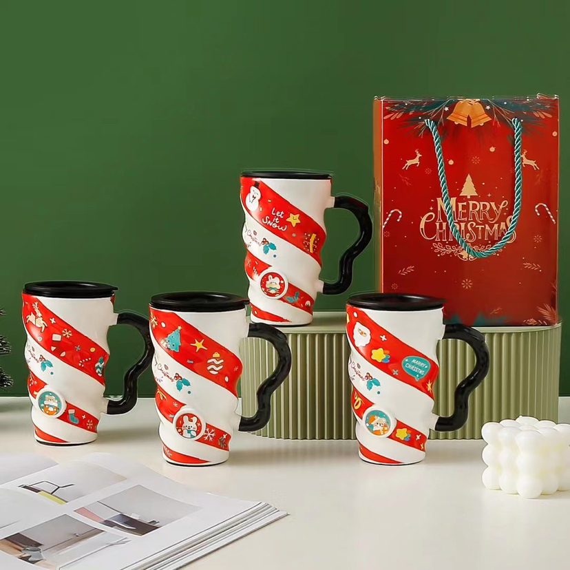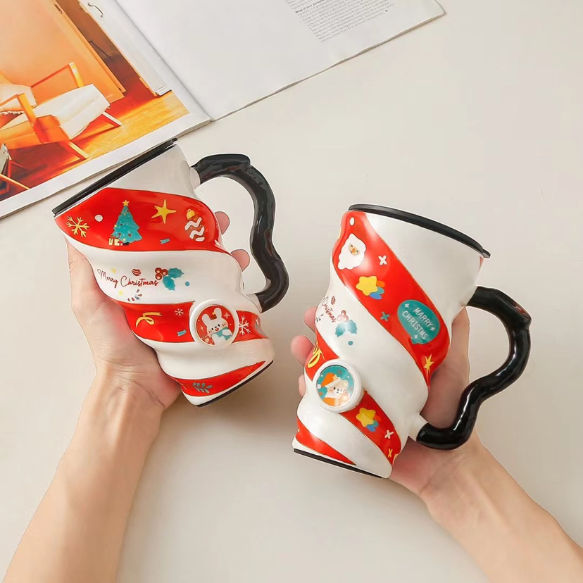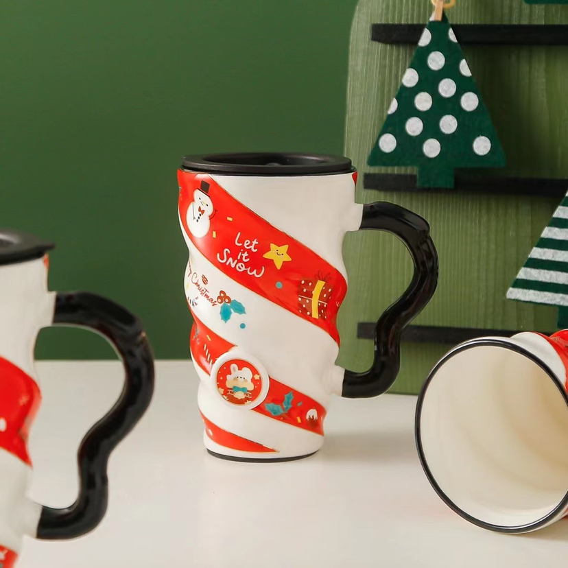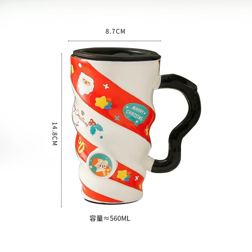 New Thread Christmas Cup Creative Porcelain Cup with Cover Water Cup