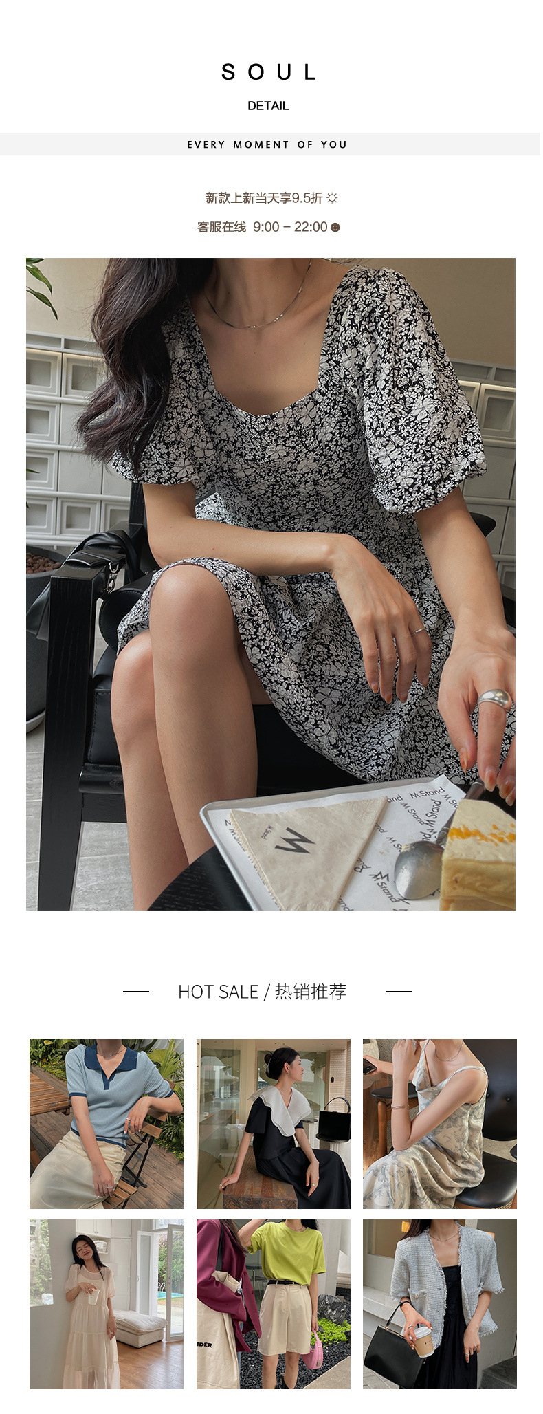 Suyu Summer 2022 New Square Collar Floral Dress Korean Style Small Puff Sleeve A- line Skirt 18200