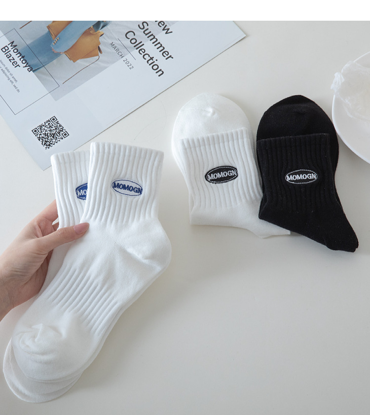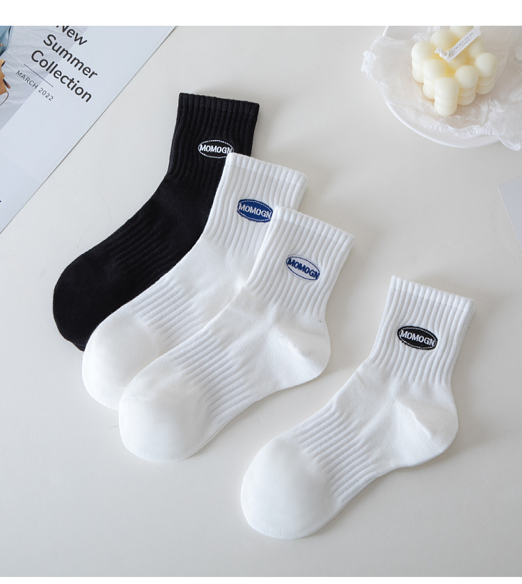 Socks Cotton Male and Female Middle Tube Cotton Socks Summer Pure Cotton Socks Wholesale Men's Simplicity Sports Style with Letters Middle-Long Stockings