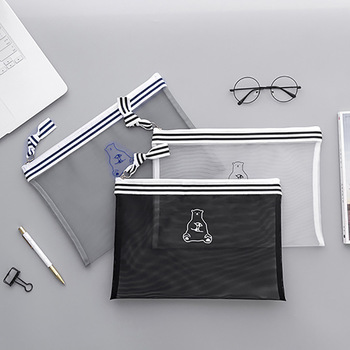 Products in Stock Free Shipping Large Capacity Simple Storage Bag Double Layer Stationery Transparent Pencil Case Nylon Student Mesh Pencil Case Wholesale