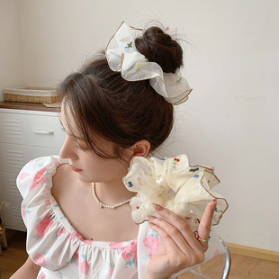 mona same mesh polka dot lace hair band 22 version bow hair rope top cuft Internet celebrity INS  tulip sweet organza flower rubber band large intestine hair band female summer tie-up hair rope simple INS style blogger style  INS style summer New Gentle sweet floral ruffled large hair band bow back head hair accessories headdress  MONA same style oversized double-layer bow lace hair band fabric handmade floral large intestine hair band ball hair rope