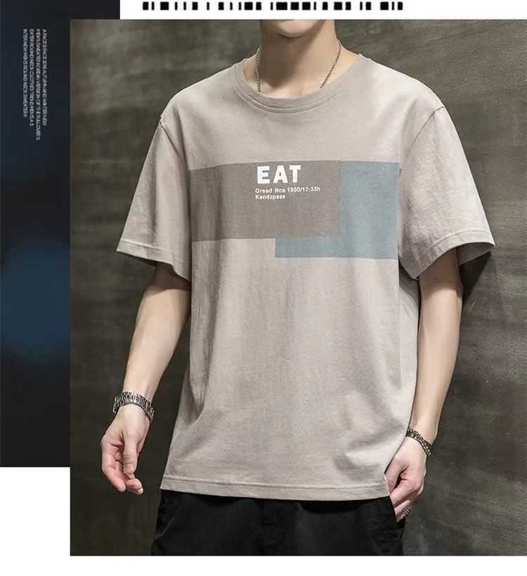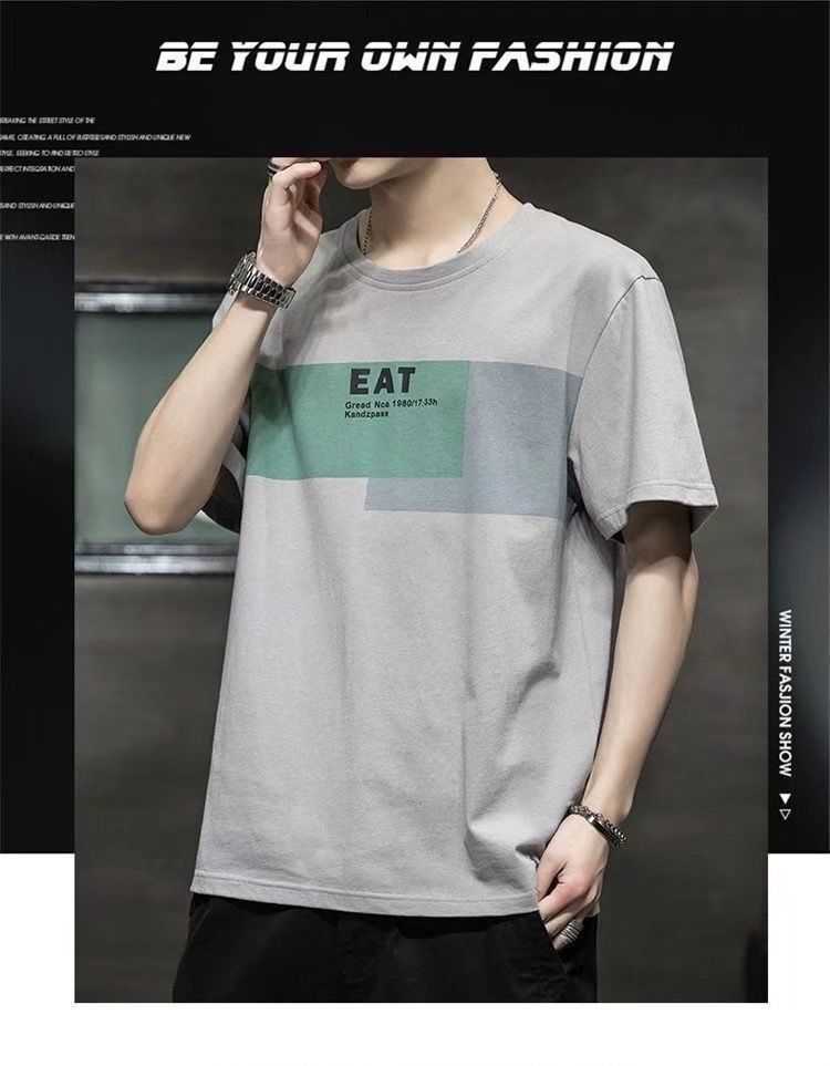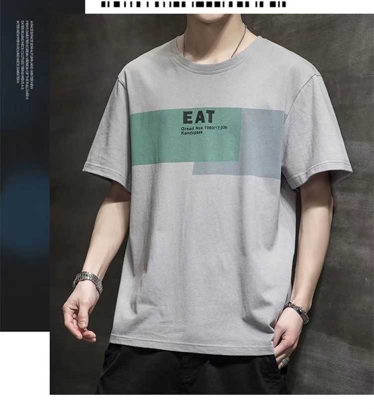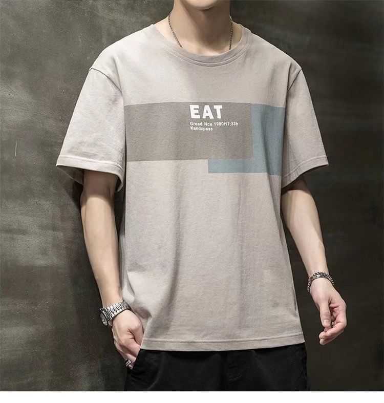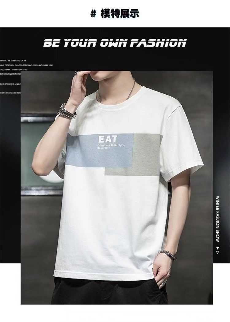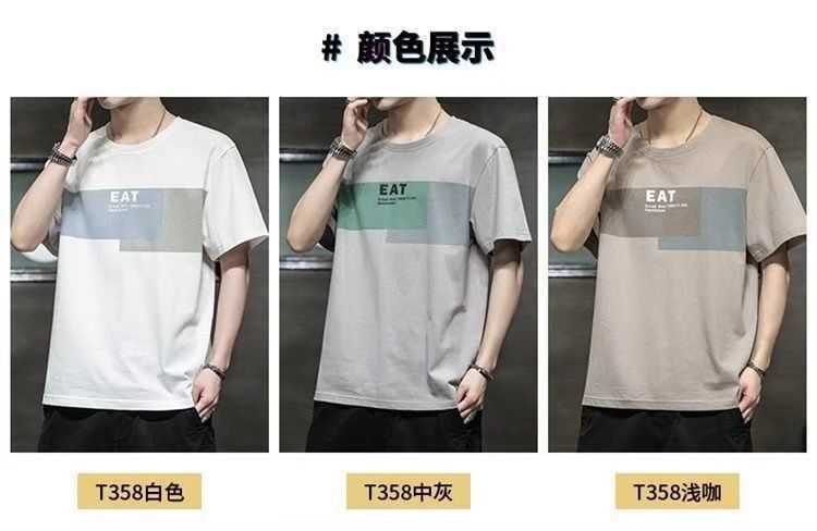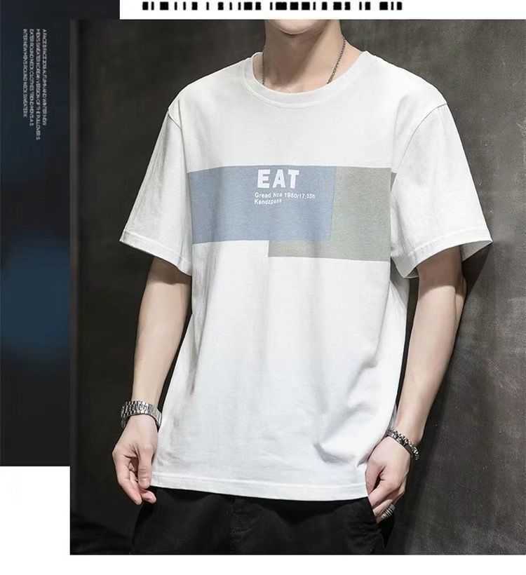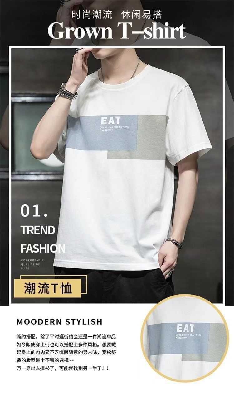 2022 New Summer Menswear Korean Style Short-Sleeved T-shirt Student Youth round Neck Printed Half Sleeve Bottoming Shirt Men's 12
