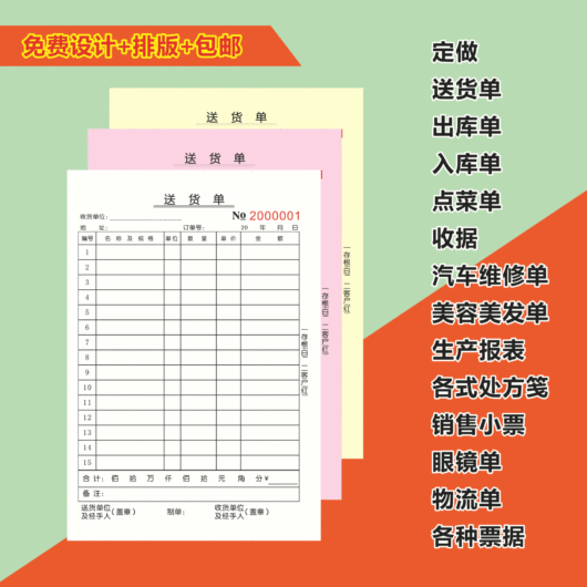 Receipt Delivery Note a/S Account Sales Delivery Order Two-Way Triple Carbon-Free Copy Ticket Package Document Printing Customization