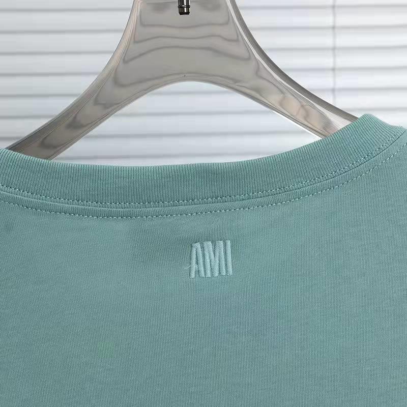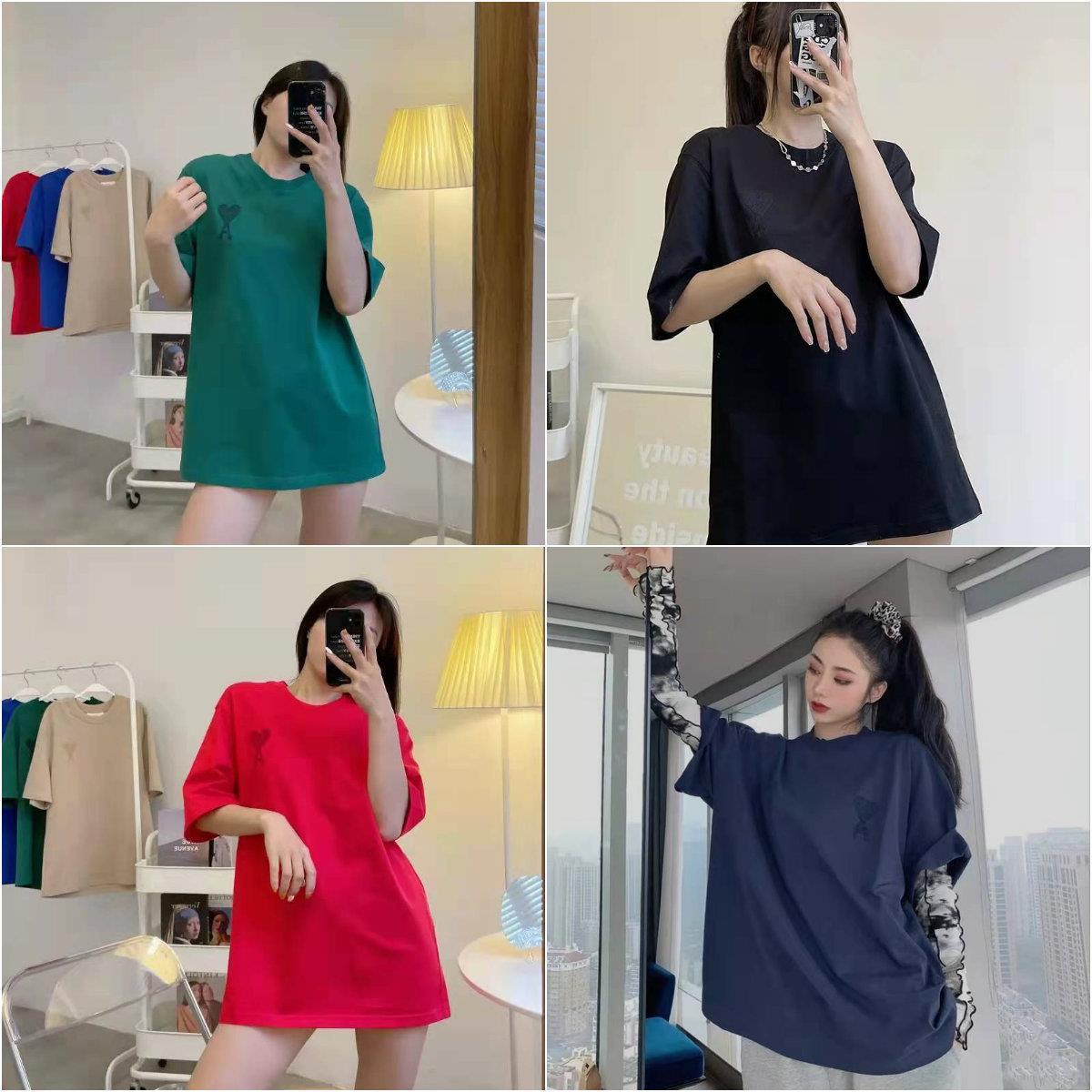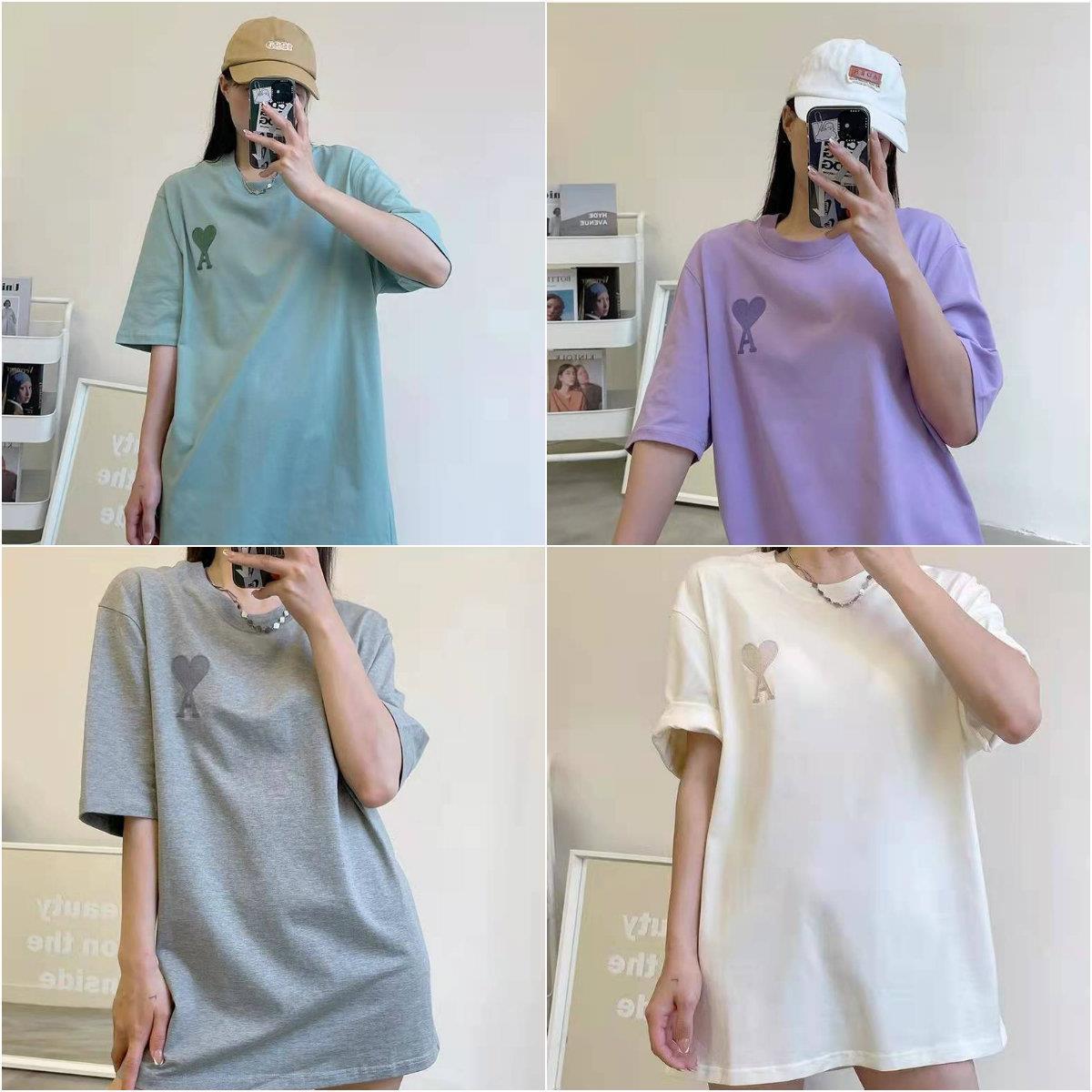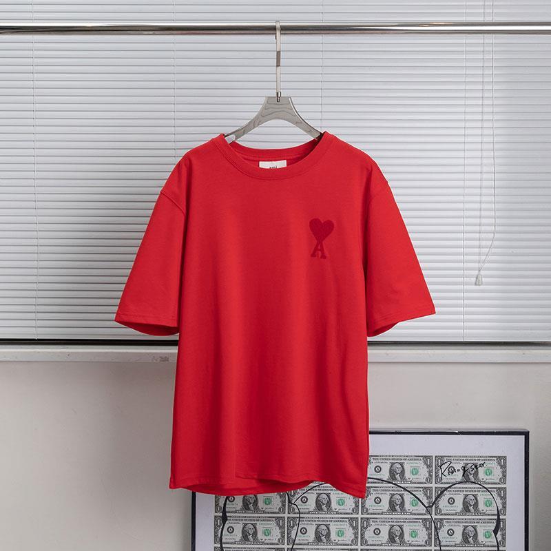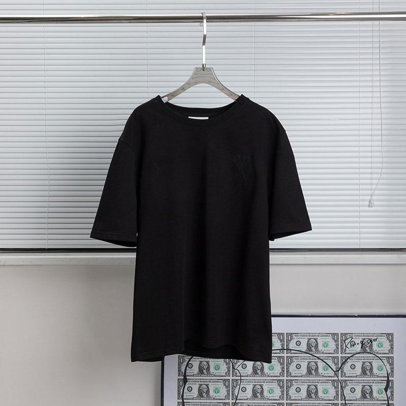 Correct Version Ami Embroidery Love Solid Color Short Sleeve Men's and Women's Same Loose Cotton Simple round Neck T-shirt Couple Wear