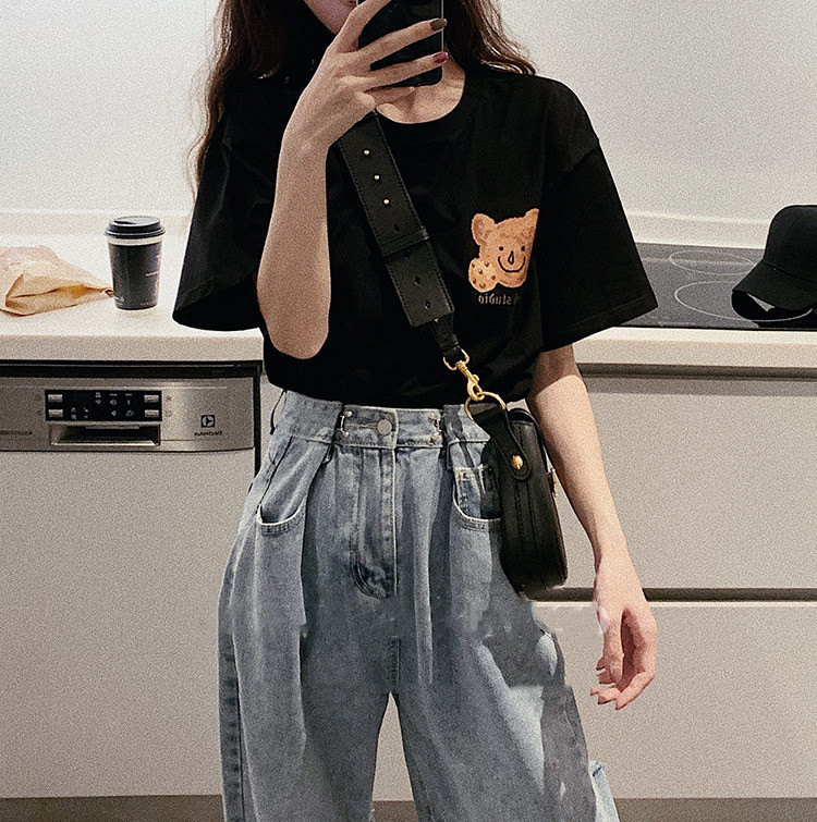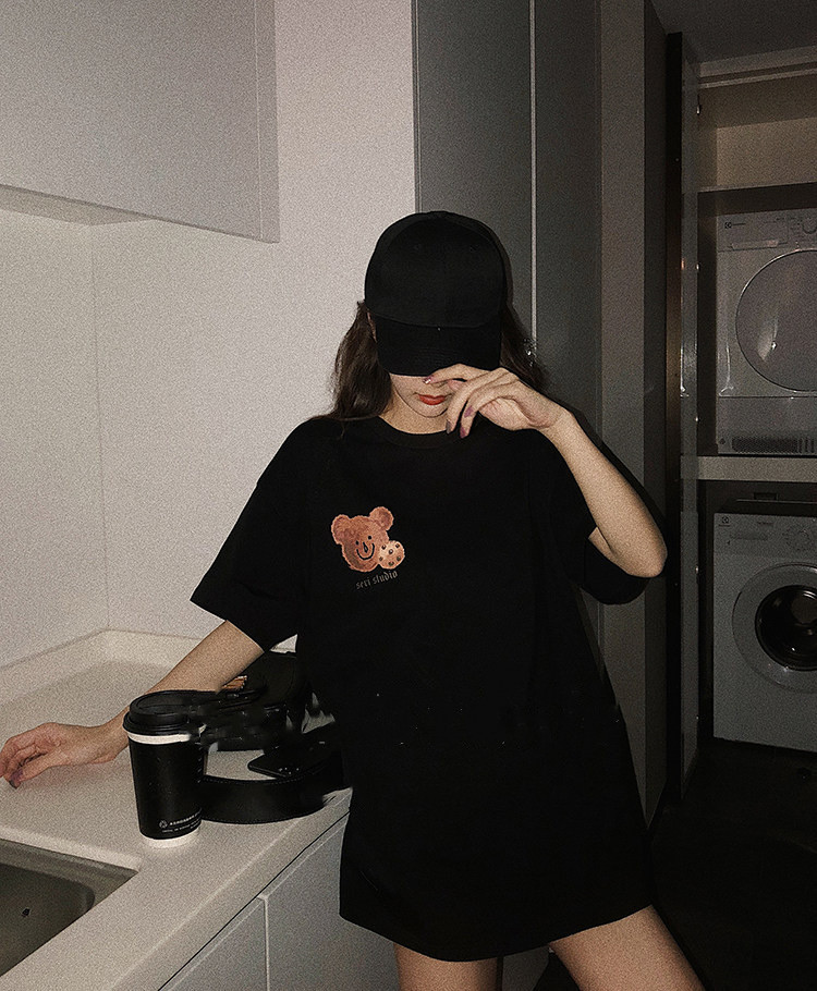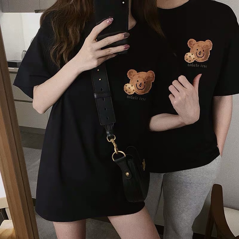 Short-sleeved women's T-shirt couple's summer wear Internet celebrity ins super popular 2021 new trendy bear short-sleeved bottoming shirt women's fashion
