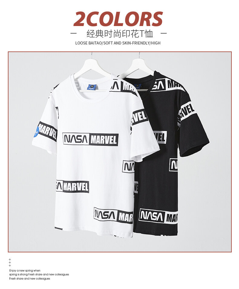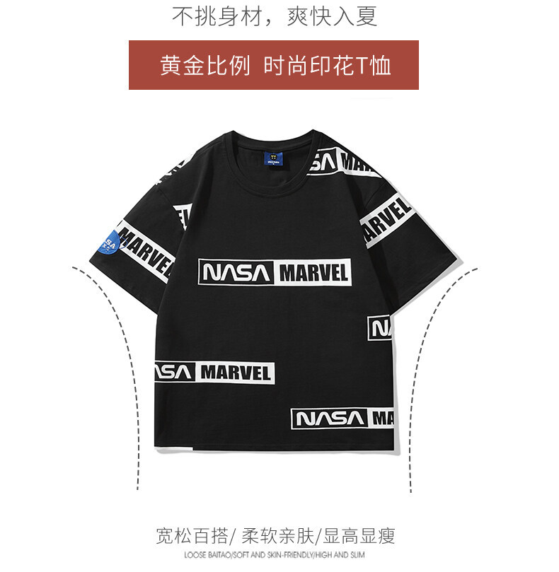 NASA Short-Sleeved T-shirt Men's 2022 Summer Loose Fashion Hong Kong Style Couple Wear Loose Cool Breathable Casual Top