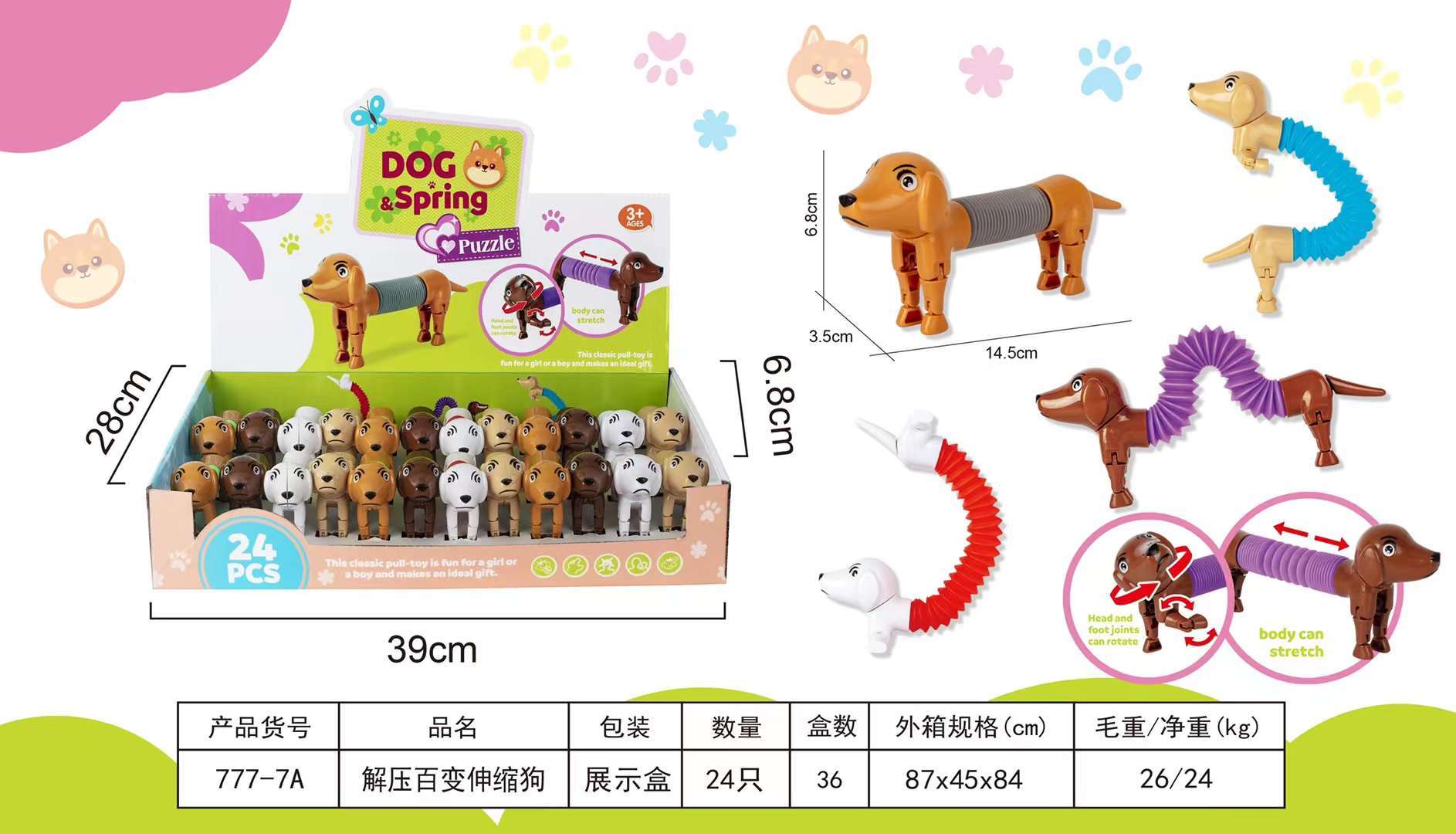 cross-border hot selling water pipe retractable dog decompression changeable retractable changeable dog lala decompression vent toy stretching dog