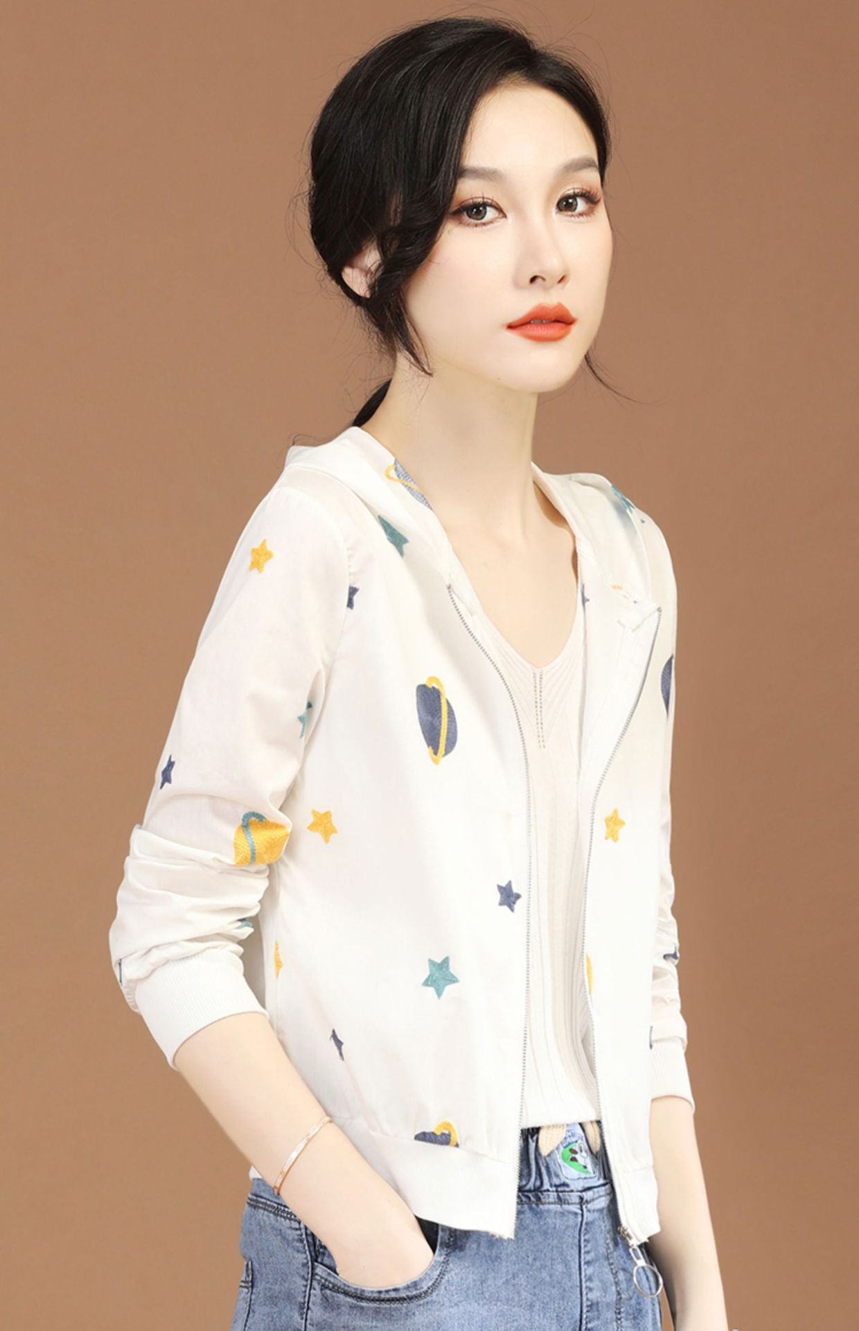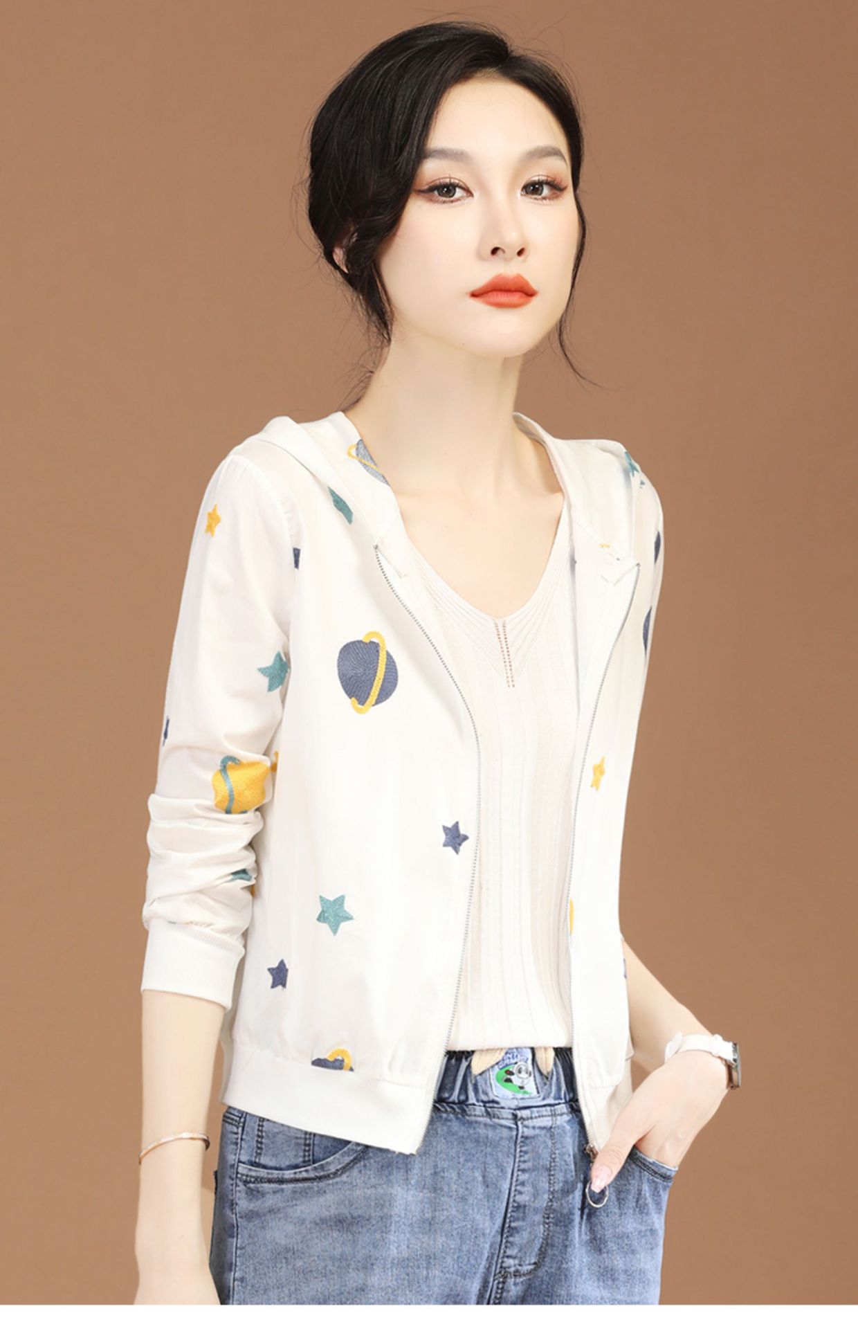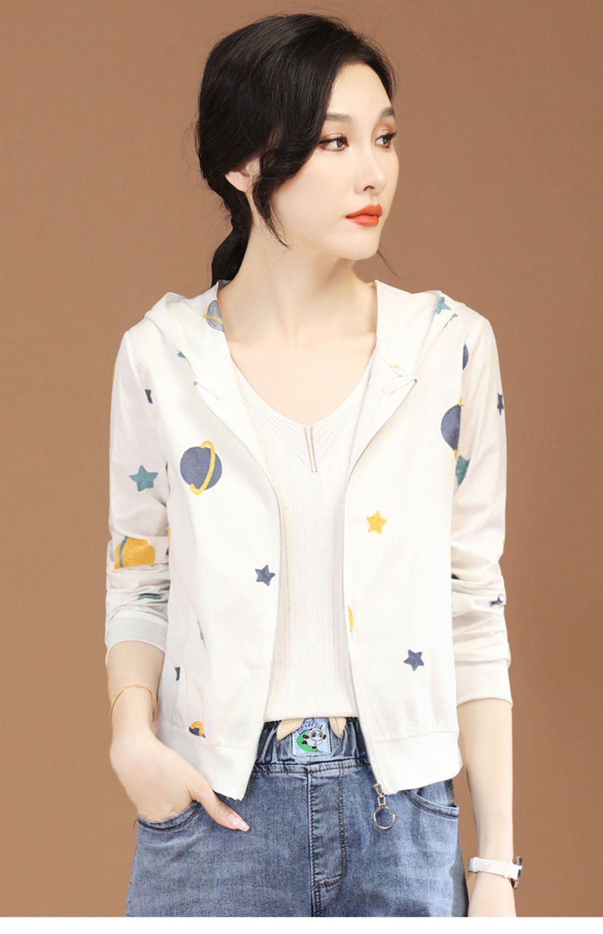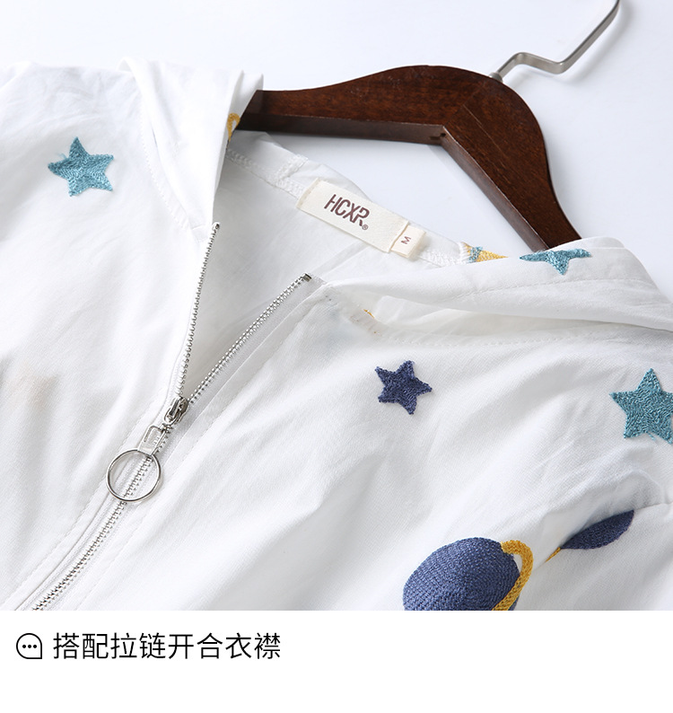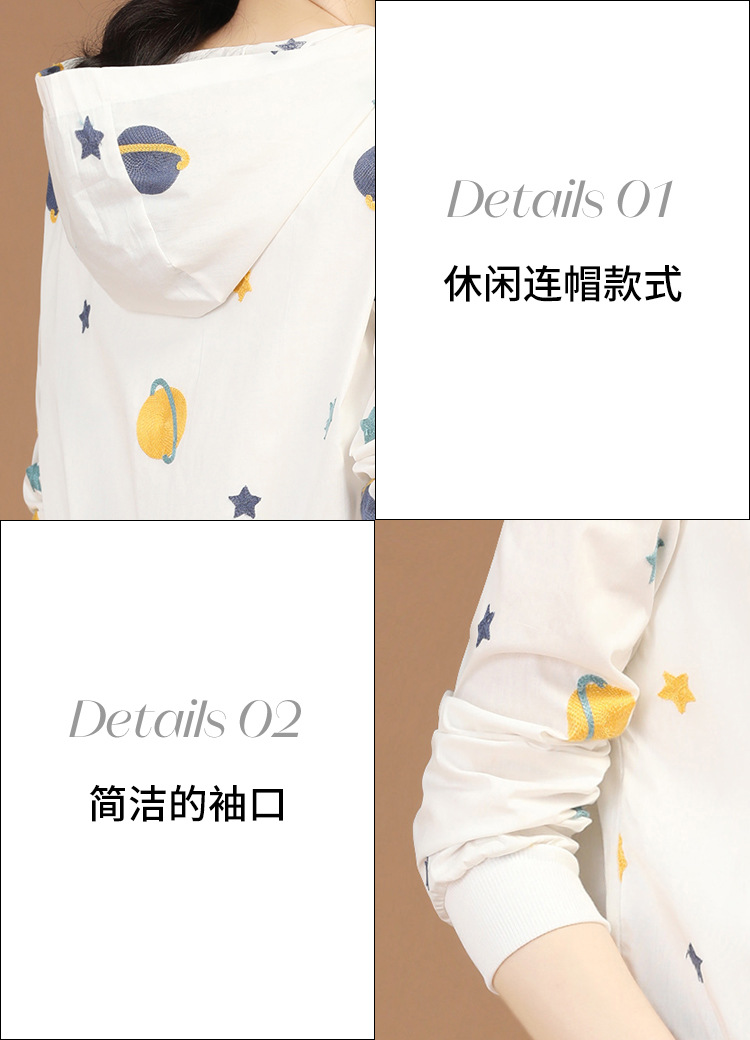 Hooded Long Sleeve Thin Embroidery Short Coat for Women 2022 Summer New Chic Loose Sun Protection Air Conditioning Shirt D0337