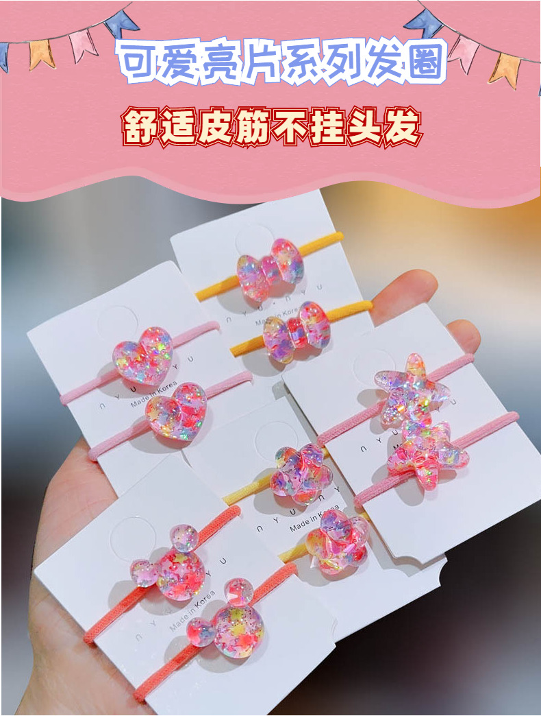 Children's Baby Girls' Hair Accessories Starfish Headband Colorful Sequins Love Heart Small Bowknot Small Rubber Band Hairband for Tying up Hair