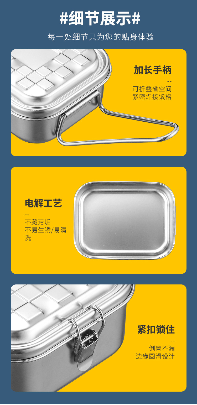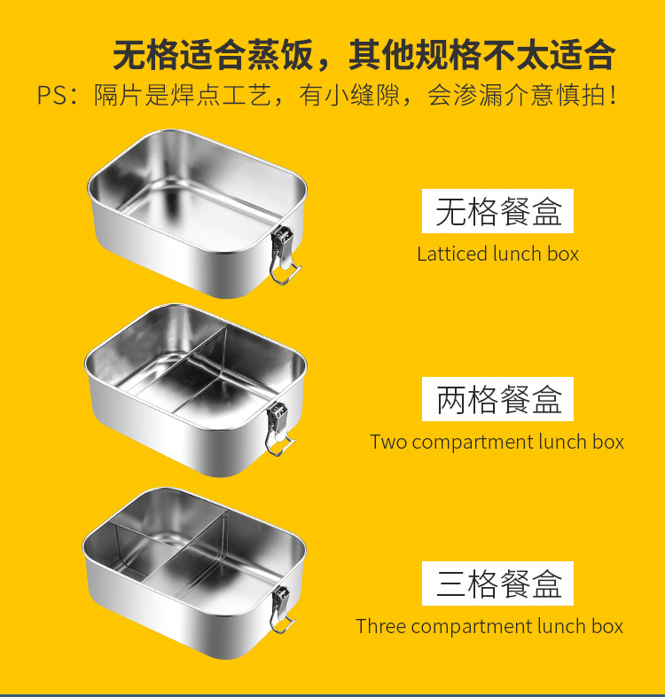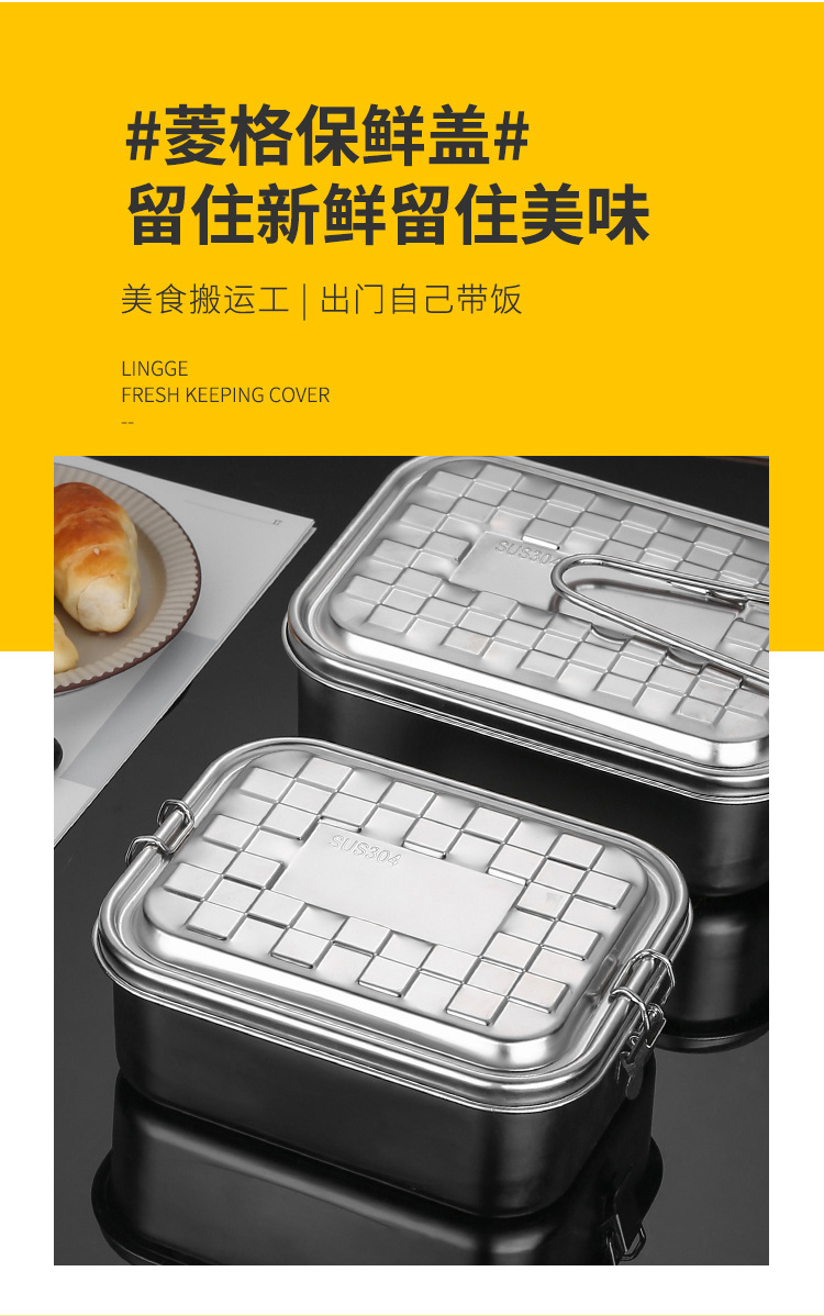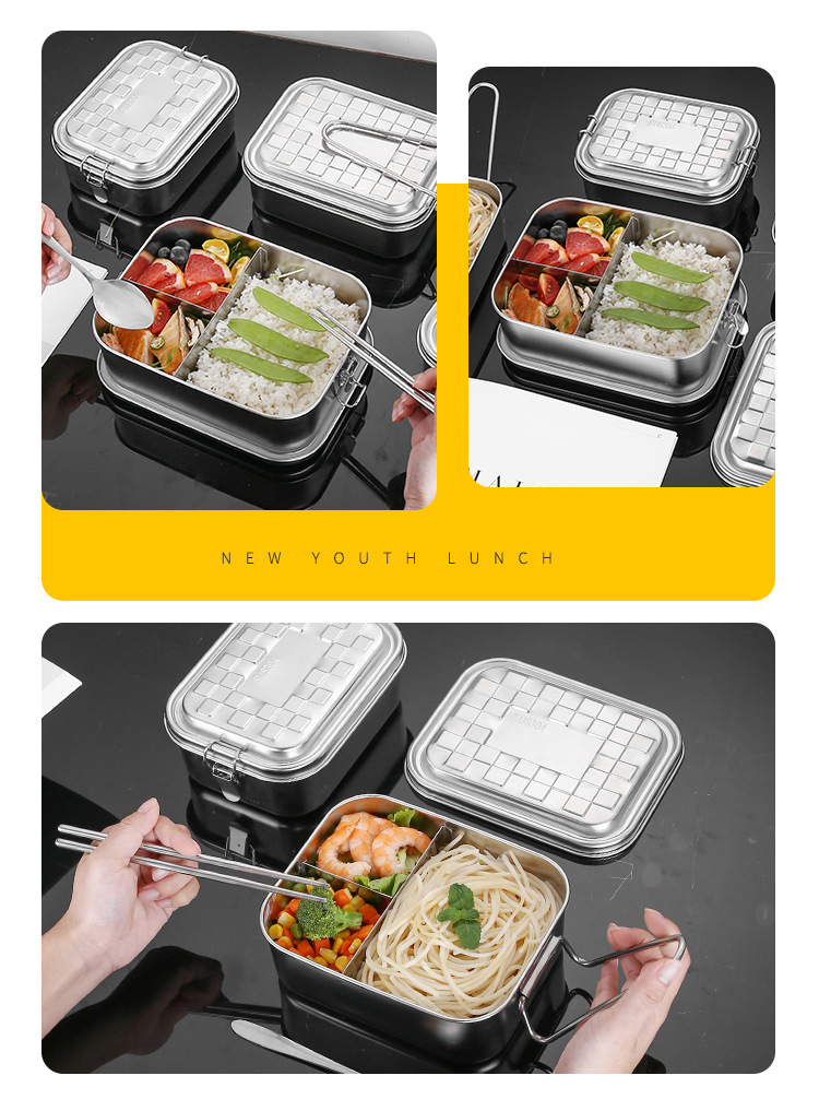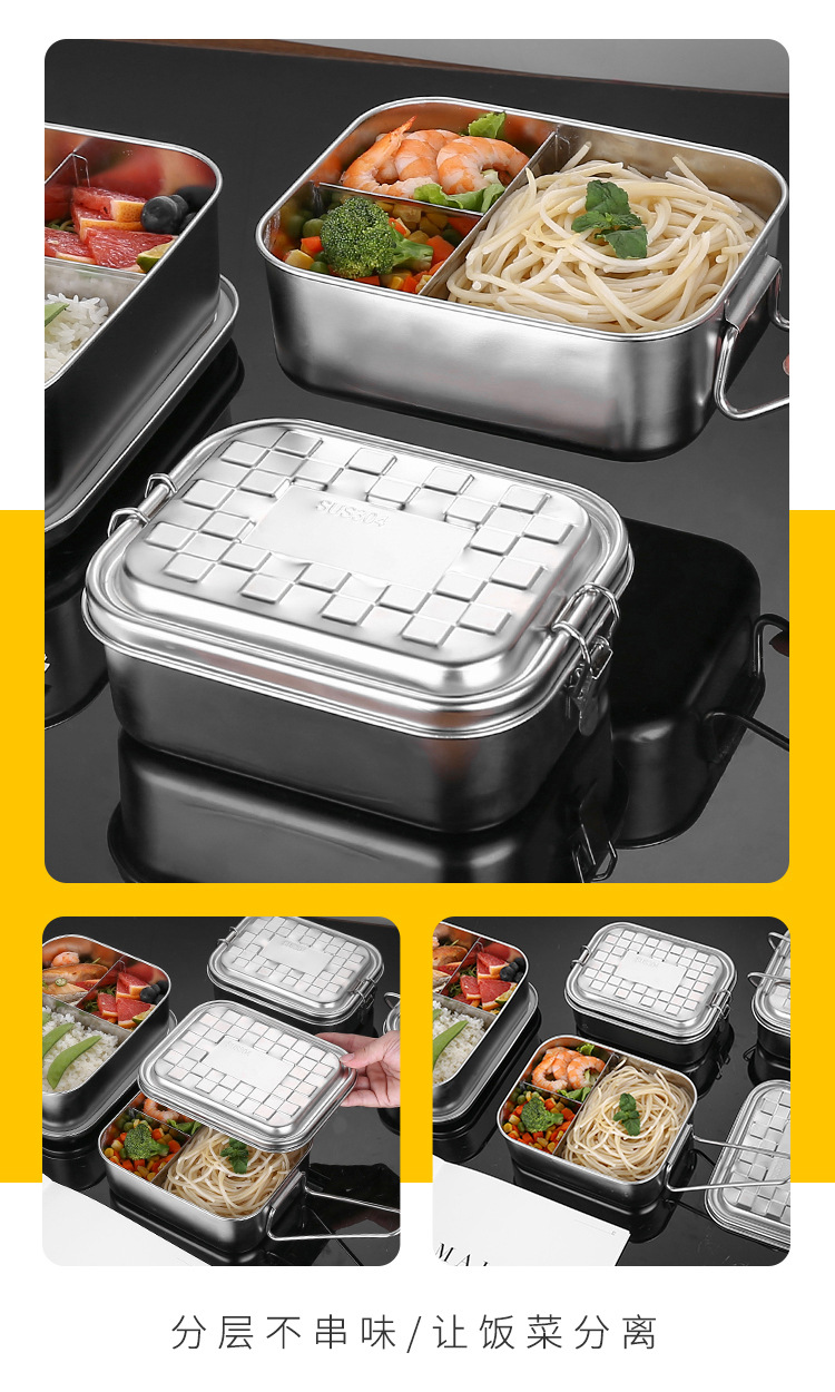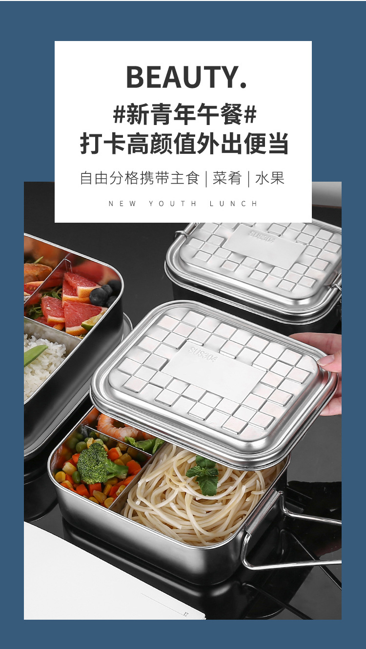 Portable 304 Stainless Steel Lunch Box Sealed Dustproof Children Student Divided Lunch Box Office Worker Bento Lunch Box
