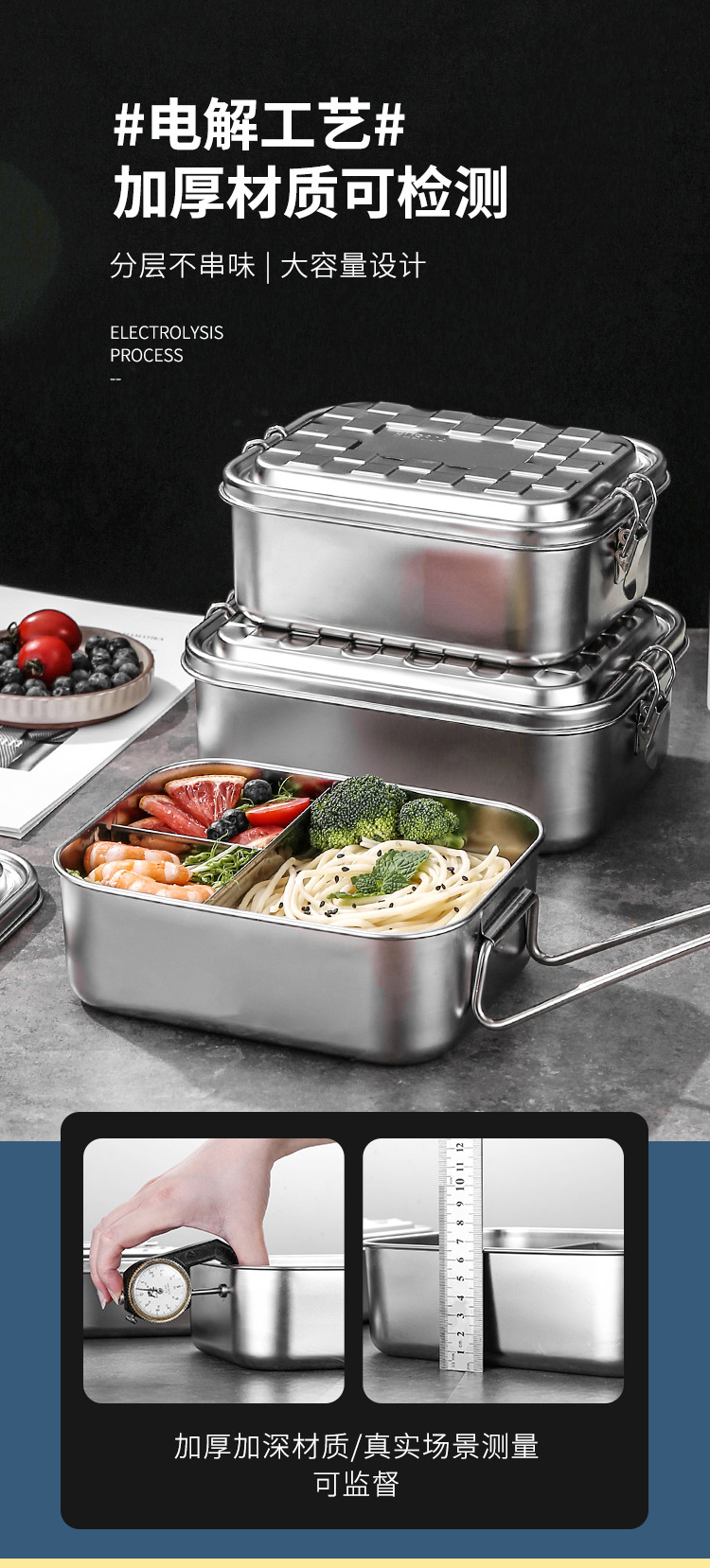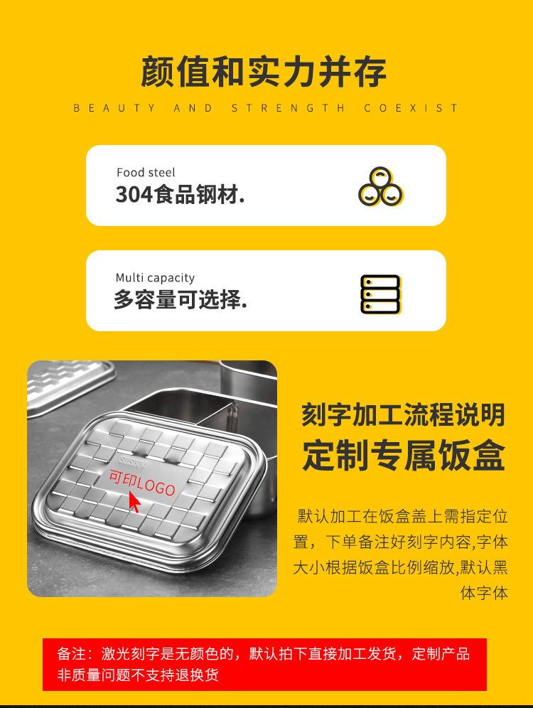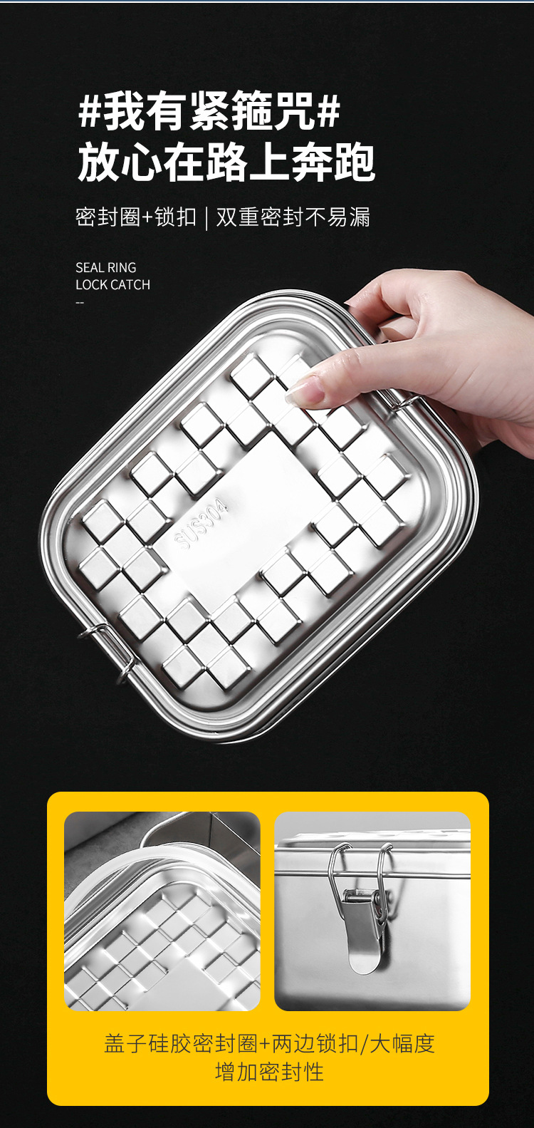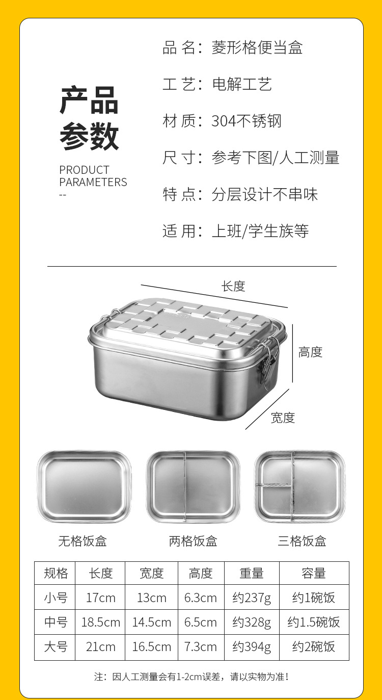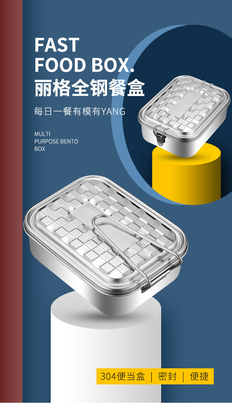 Portable 304 Stainless Steel Lunch Box Sealed Dustproof Children Student Divided Lunch Box Office Worker Bento Lunch Box