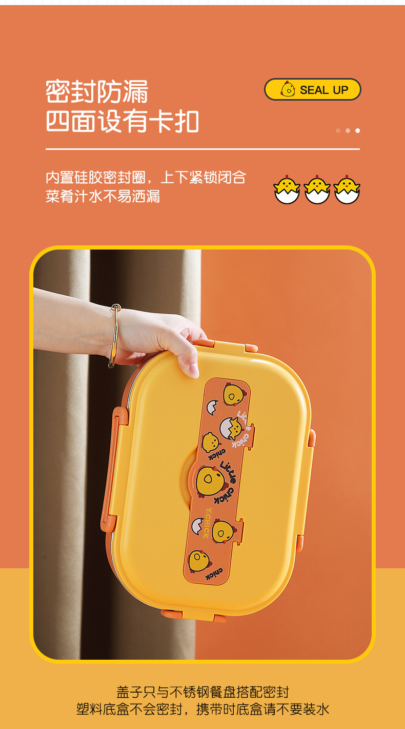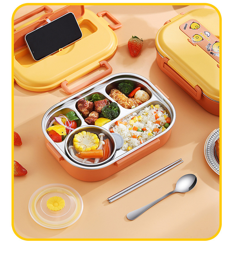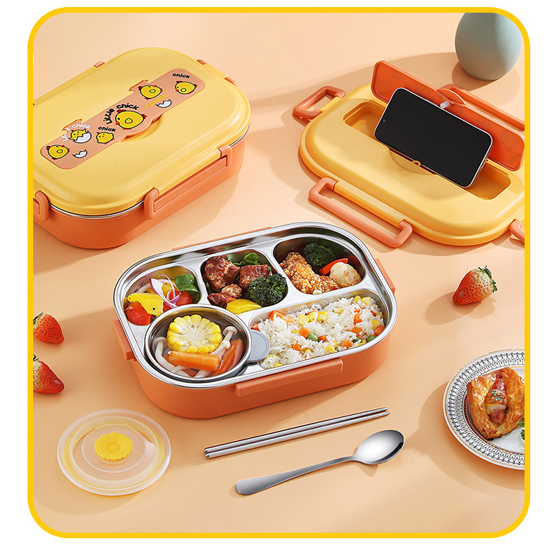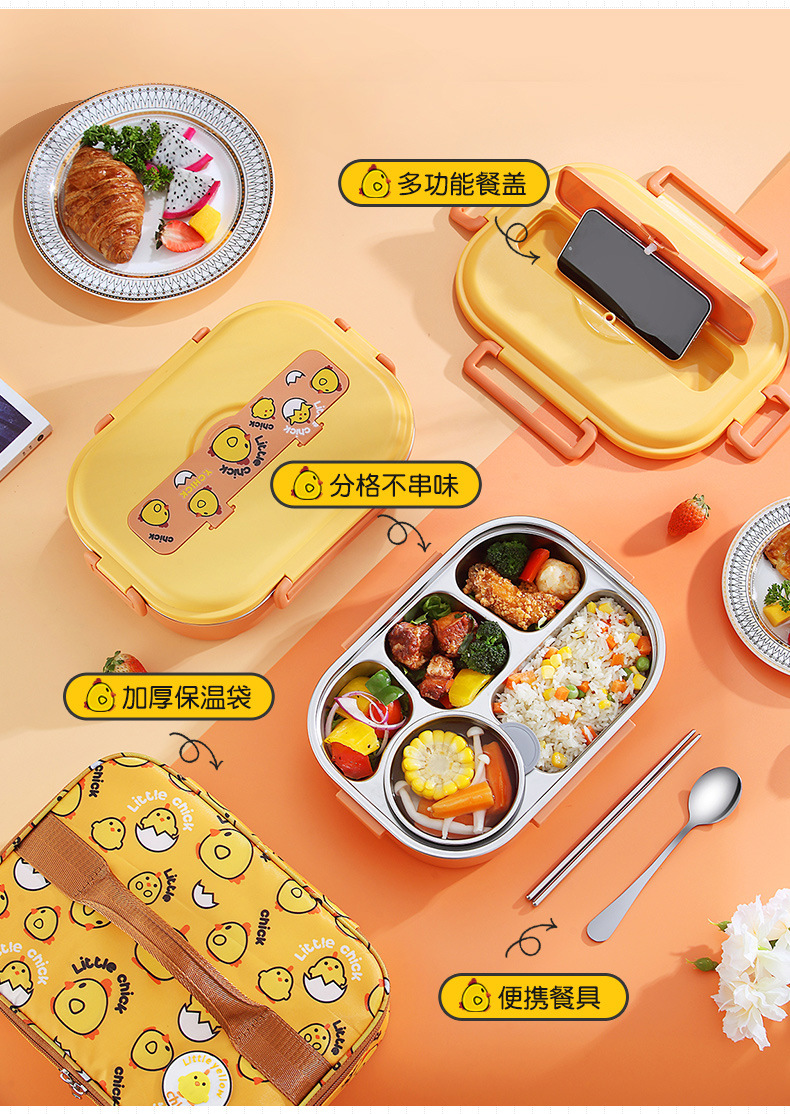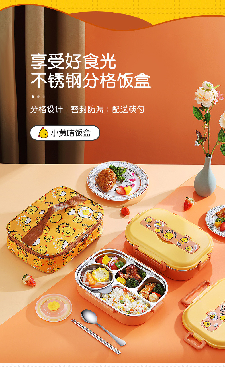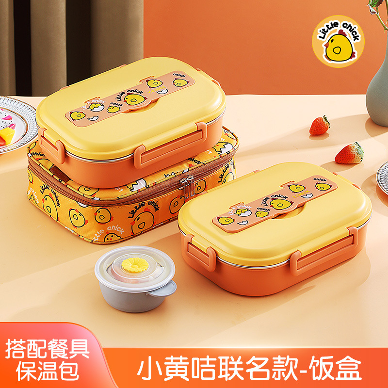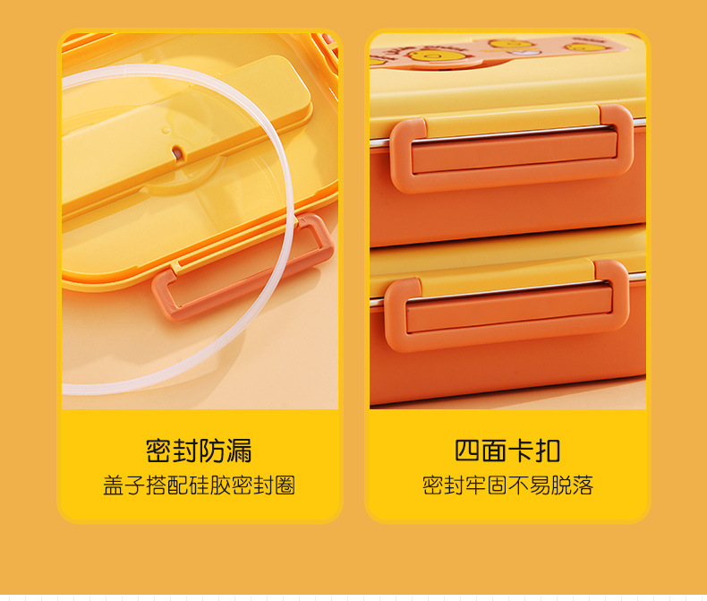 Small Yellow Card Stainless Steel Insulated Lunch Box Cartoon Separated Lunch Box with Tableware Lunch Box Children Carrying Lunch Box Wholesale