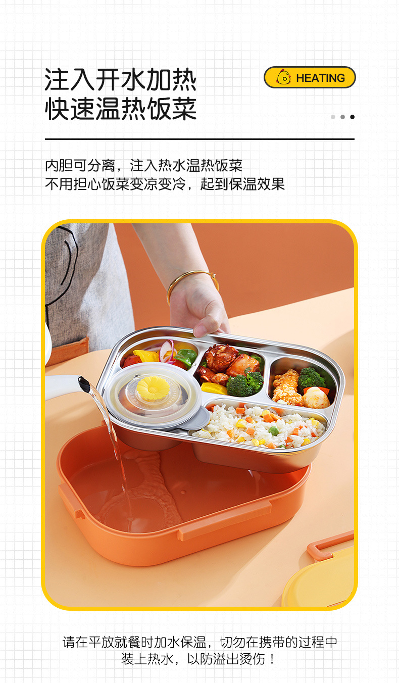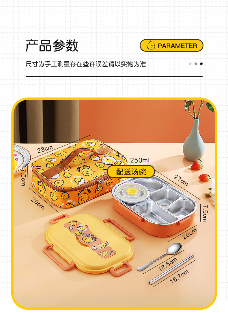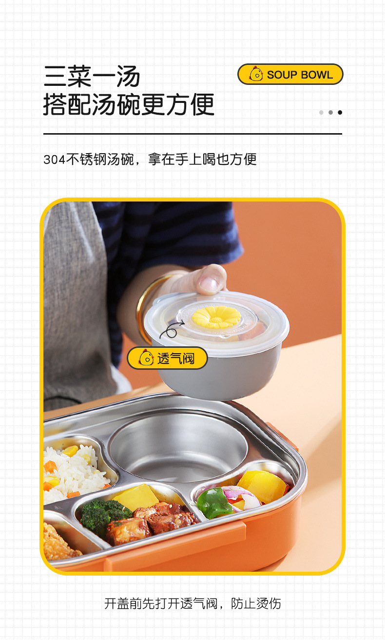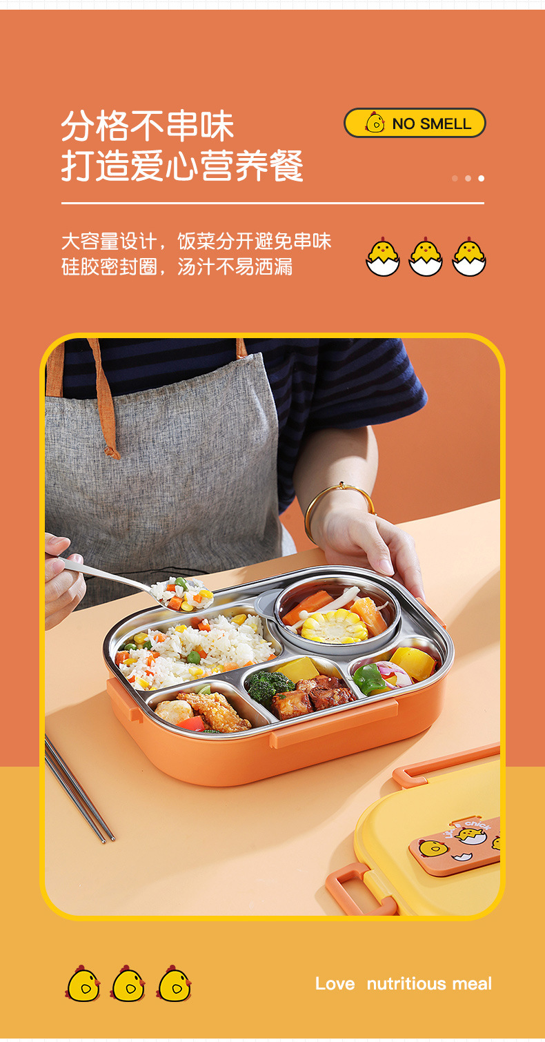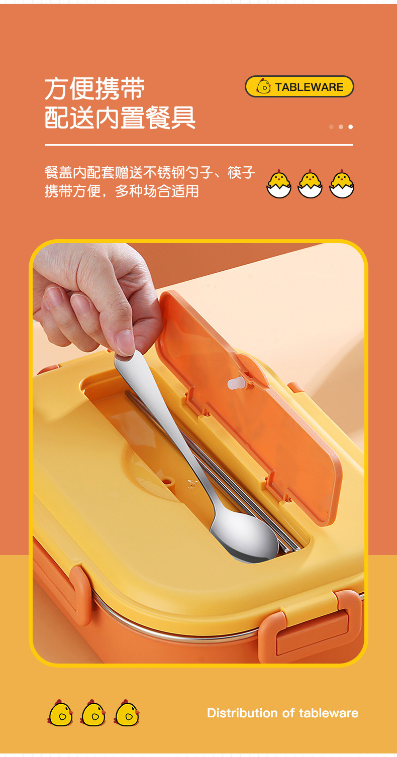 Small Yellow Card Stainless Steel Insulated Lunch Box Cartoon Separated Lunch Box with Tableware Lunch Box Children Carrying Lunch Box Wholesale