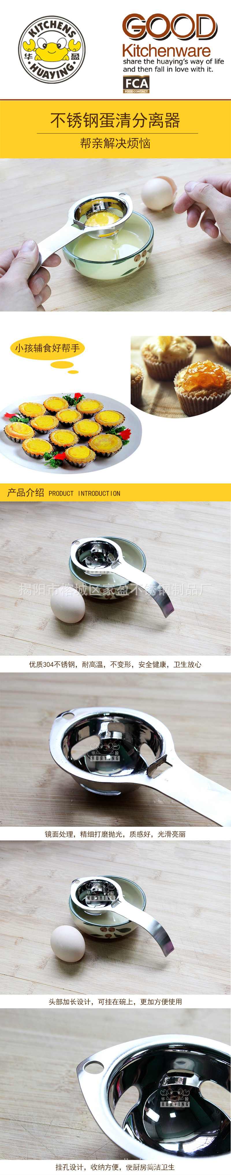 [Huaying] Factory Wholesale 304 Stainless Steel Filter Egg Yolk Separator Creative Baking Egg White Separator