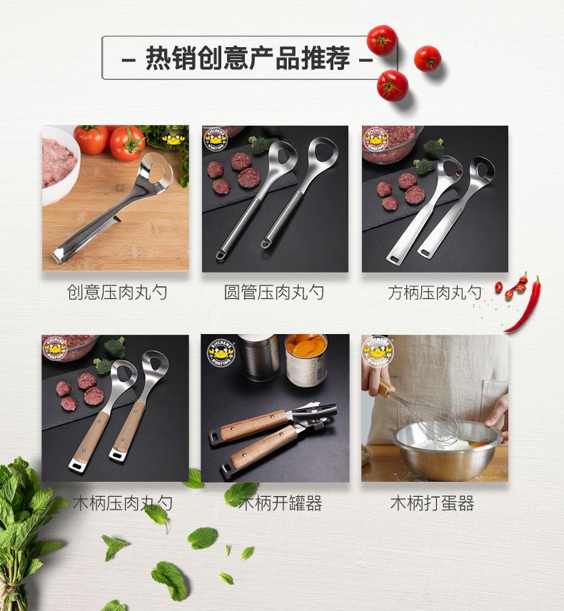 [Huaying] direct sales stainless steel meatball fish ball maker creative kitchen tools manual extrusion meatball spoon  cross-border Huaying manual black pepper grinder household seasoning spices glass grinding bottle pepper pulverizer tools [Huaying] factory direct sales 304 stainless steel filter egg yolk separator creative baking egg white separator