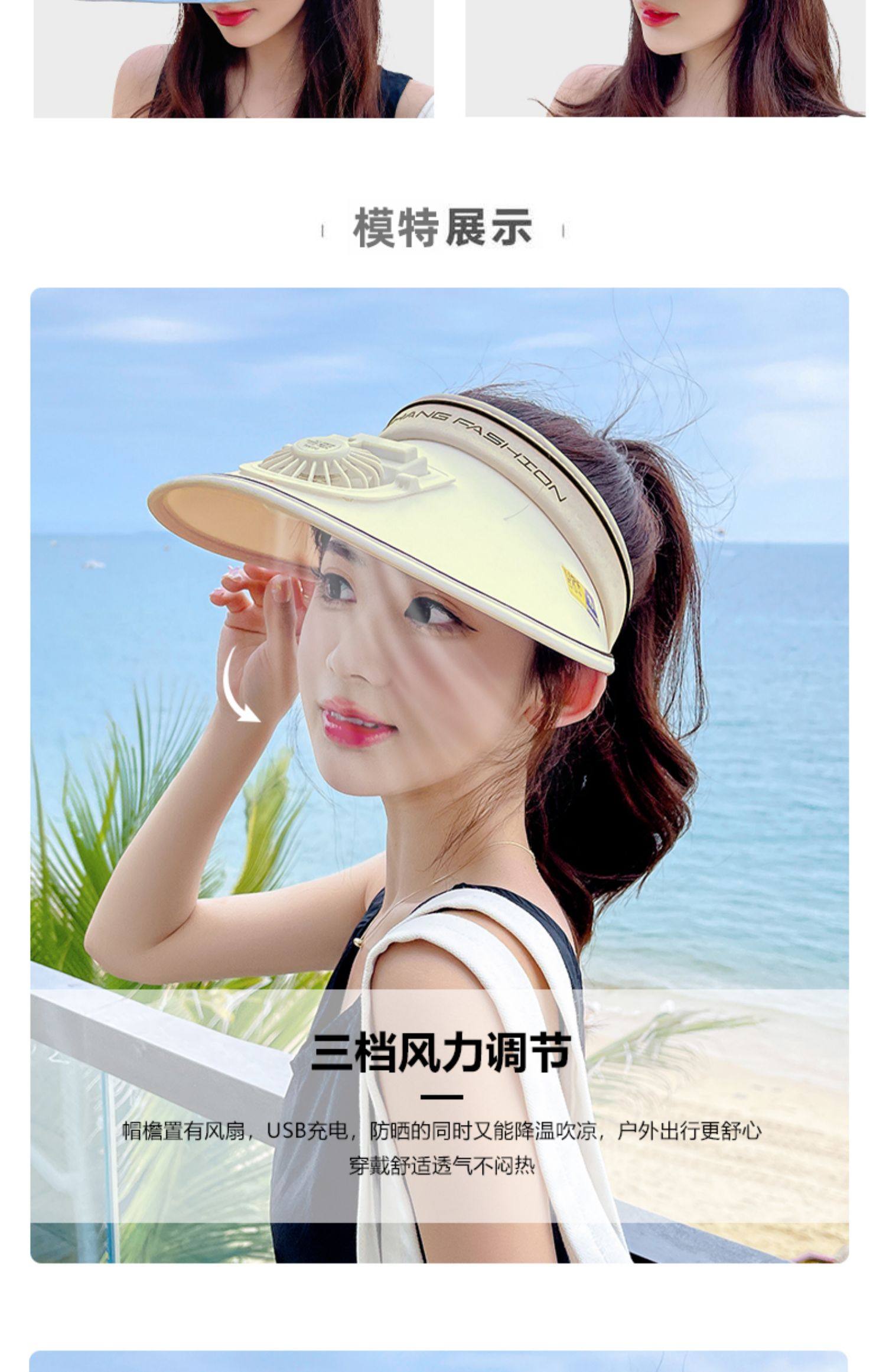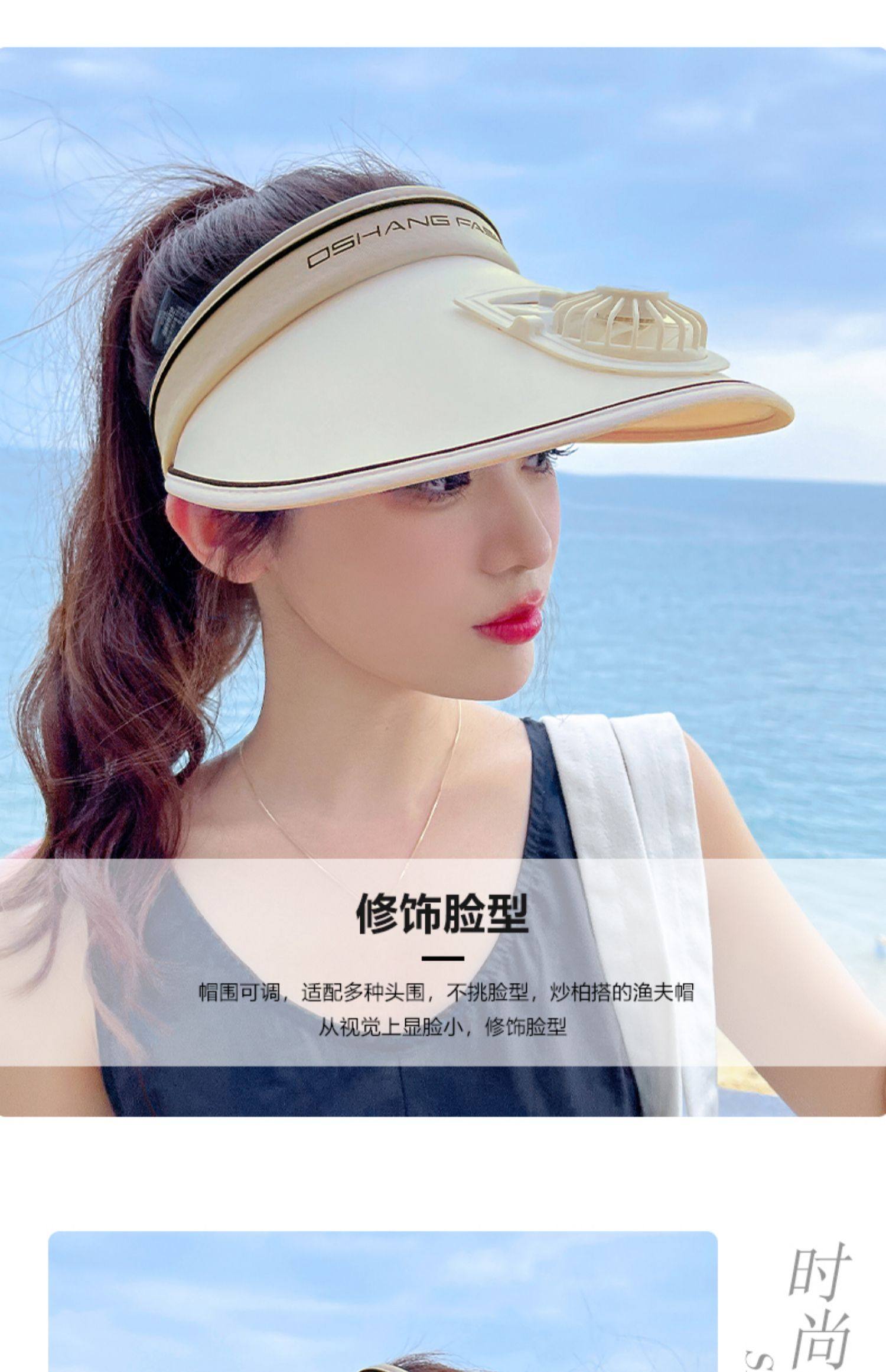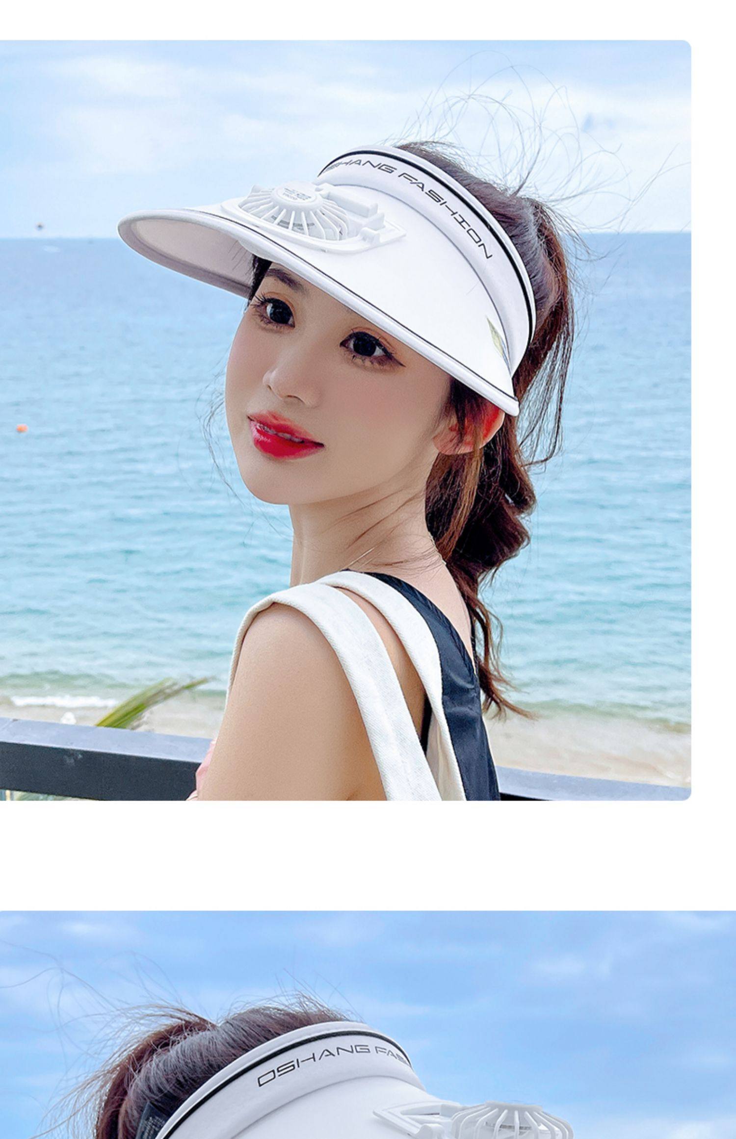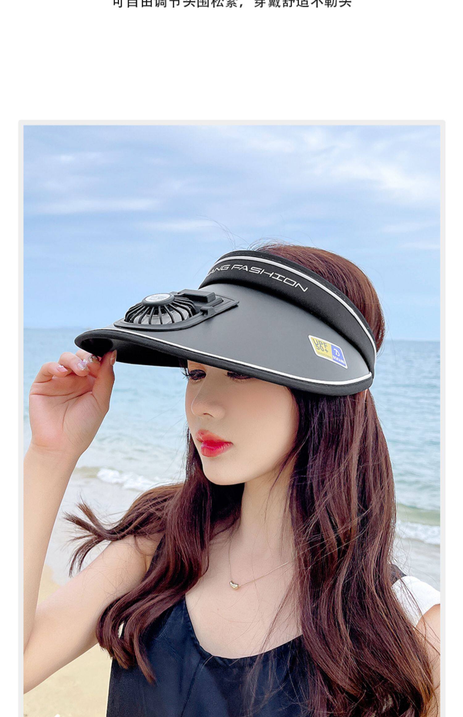 Rechargeable Cap with Fan Sun Protection Hat Female Summer 2022 New Air Top Sun Hat with Wide Brim Face-Looking Small Sun Hat
