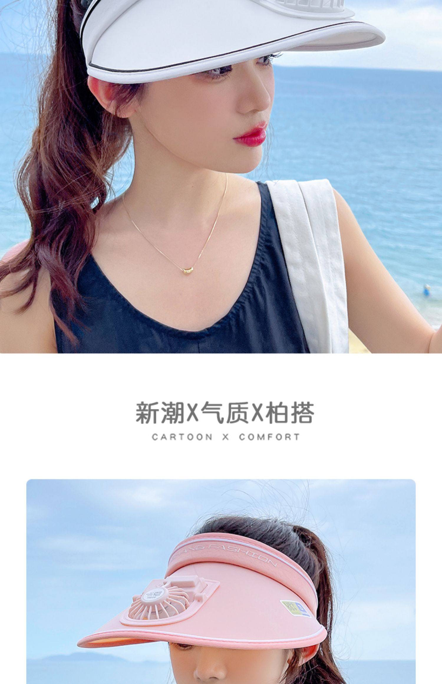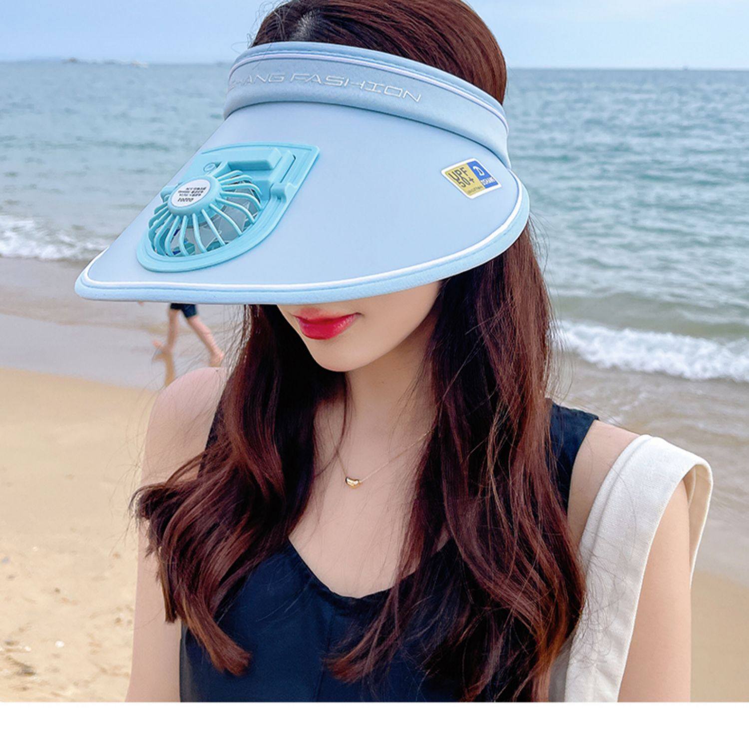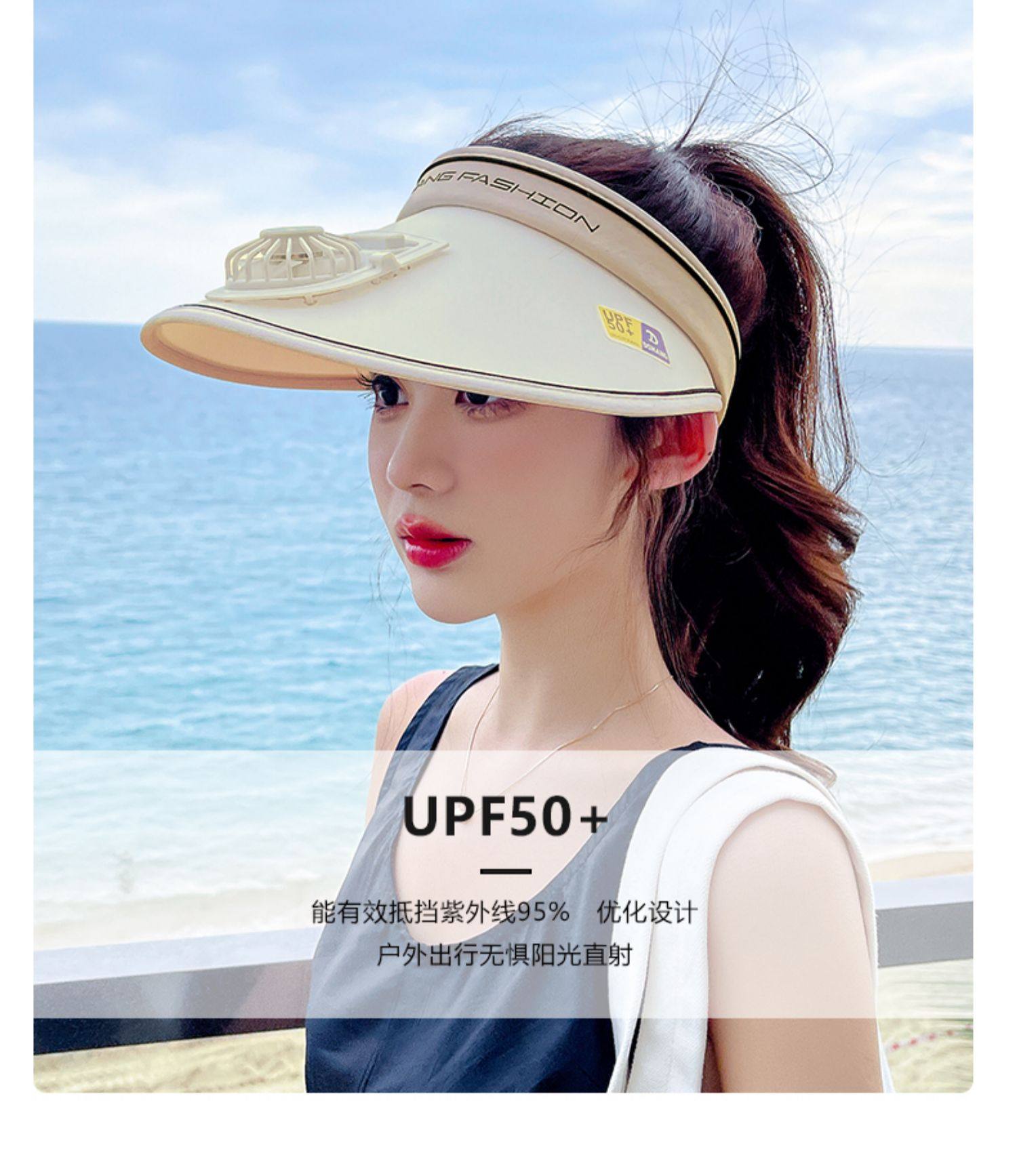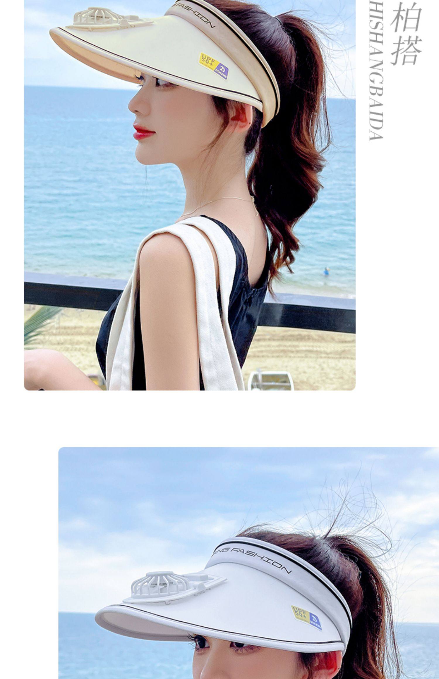 Rechargeable Cap with Fan Sun Protection Hat Female Summer 2022 New Air Top Sun Hat with Wide Brim Face-Looking Small Sun Hat