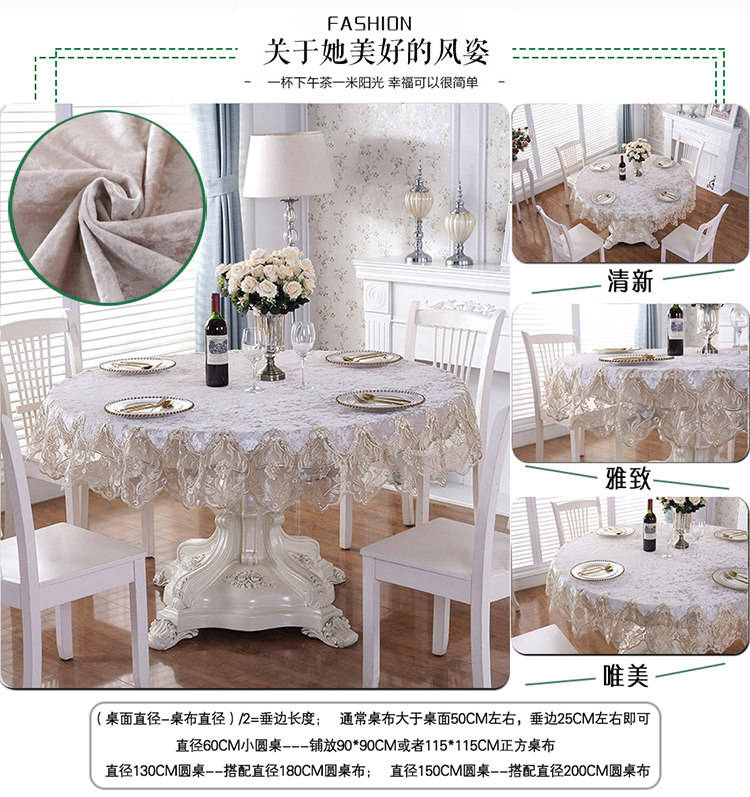 elegant beige: diameter 150cm round tablecloth (no lace in the middle)