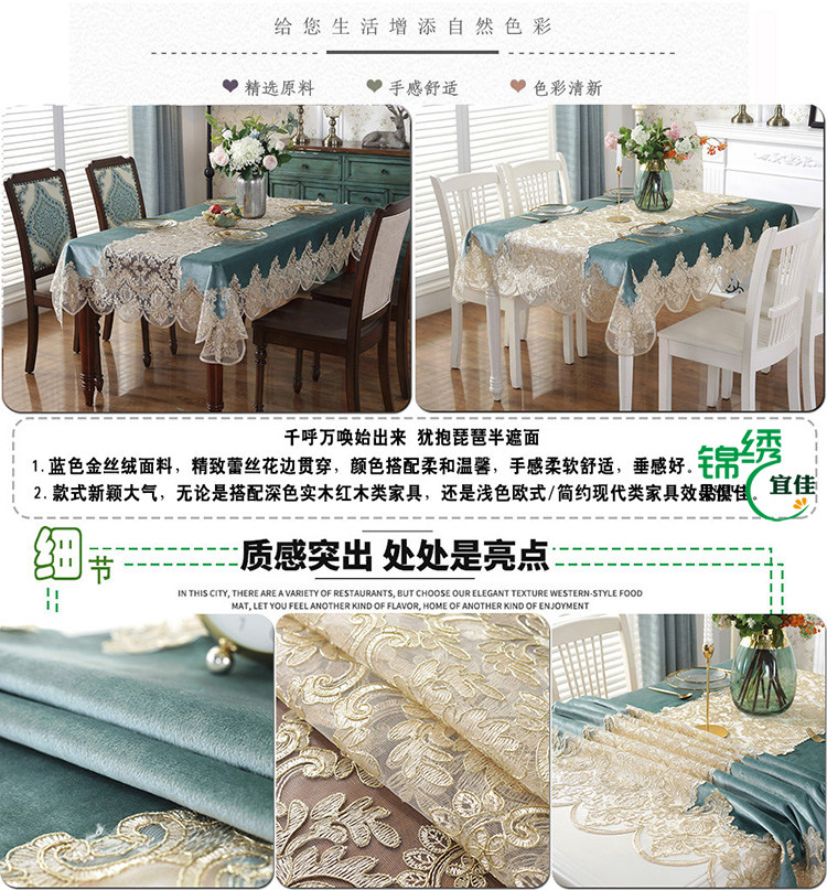 peacock blue: 70 * 135cm tablecloth (no lace in the middle)