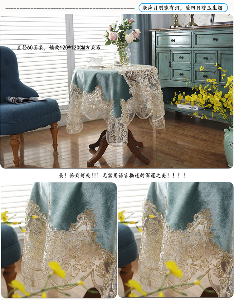 peacock blue: 90 * 90cm square tablecloth (no lace in the middle)