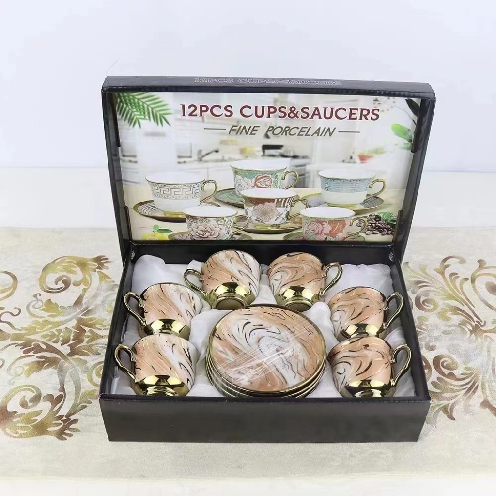 electroplating coffee set set 6 cups 6 plates gold teacup water cup cups mug dish tray kitchen supplies
