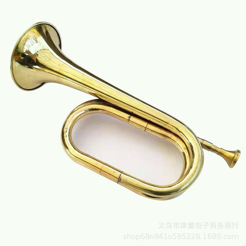 Product Description: The military horn is electroplated in gold, with a variety of uses, including as a youth scout charge call, a practice horn for students, and as an adult practice instrument.