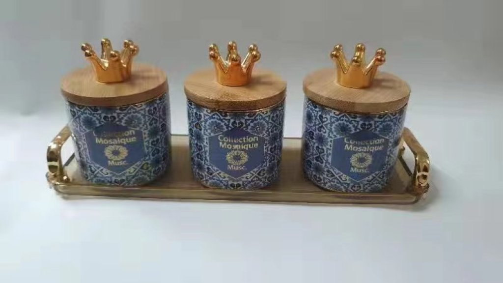 three-piece seasoning jar storage jar sealed jar storage tank candy box coffee pot ceramic fresh-keeping jar in stock