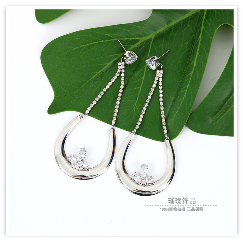 drop-shaped stud earrings elegant zircon super flash earrings pendant long earrings party lady classic style accessories wholesale