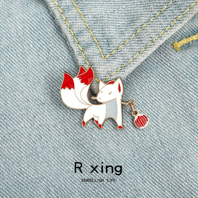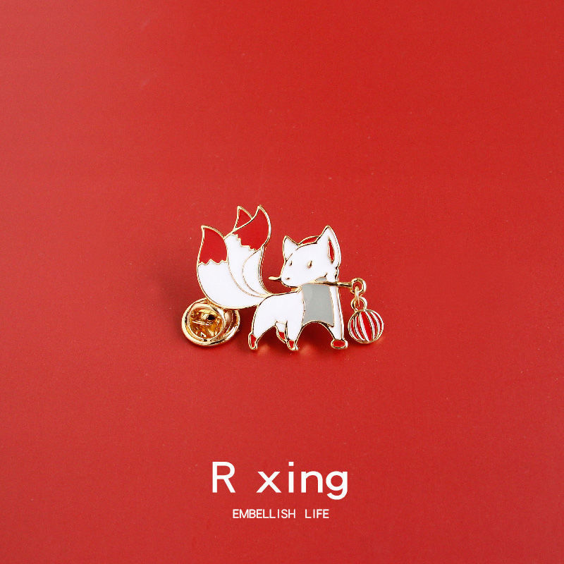 cute ins fashion badge fox chinese style brooch student collar pin men and women all-matching bag accessories