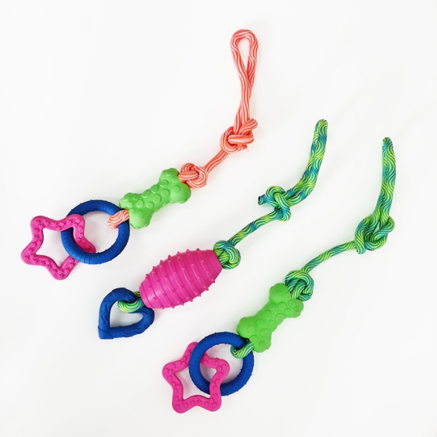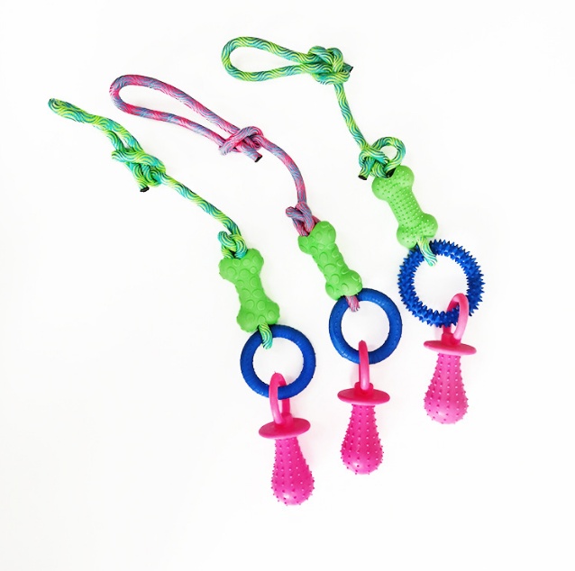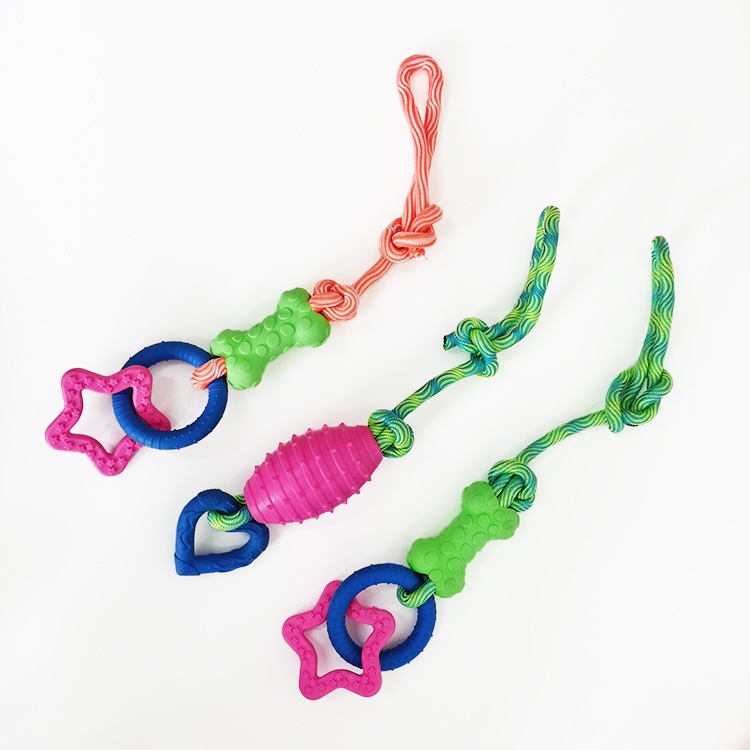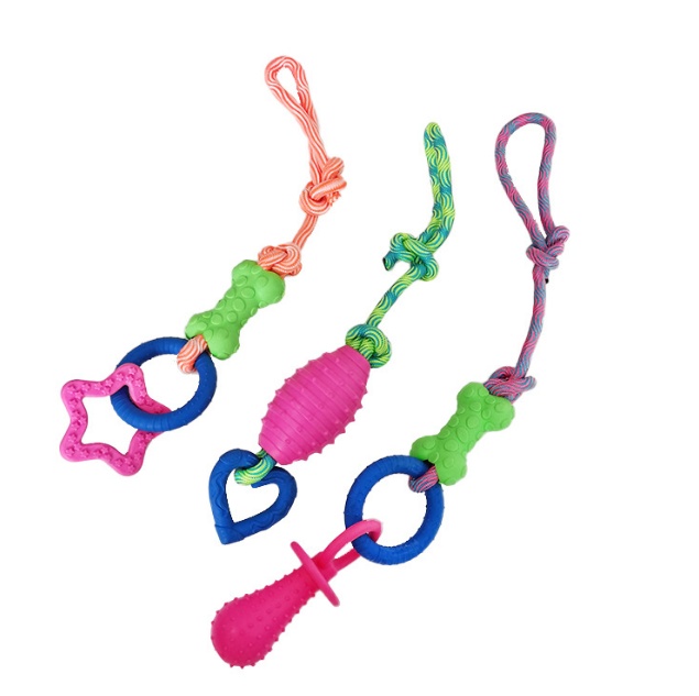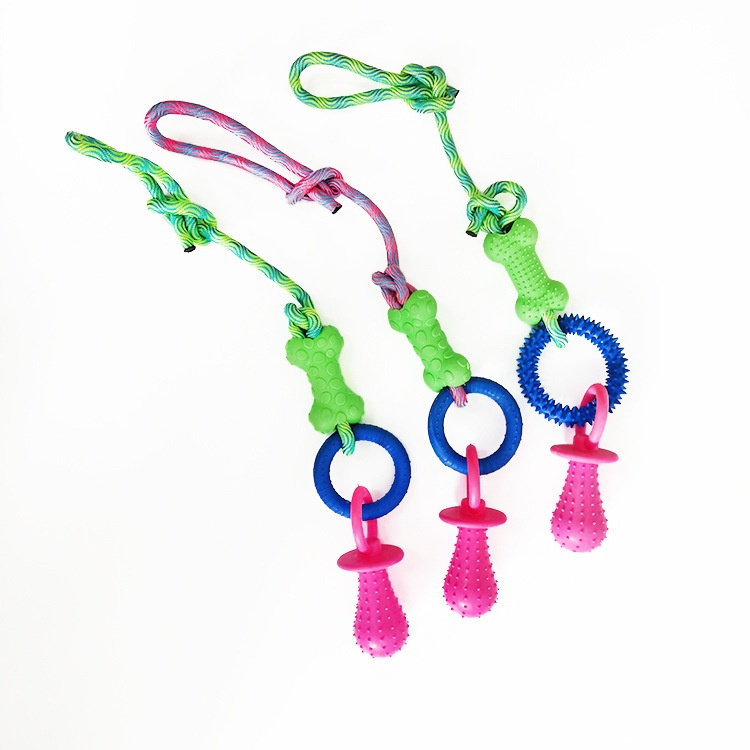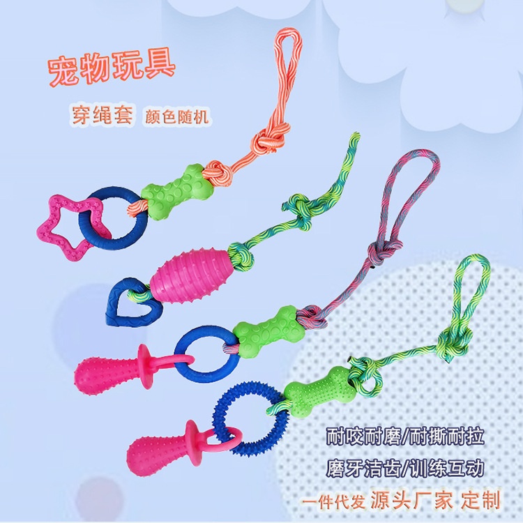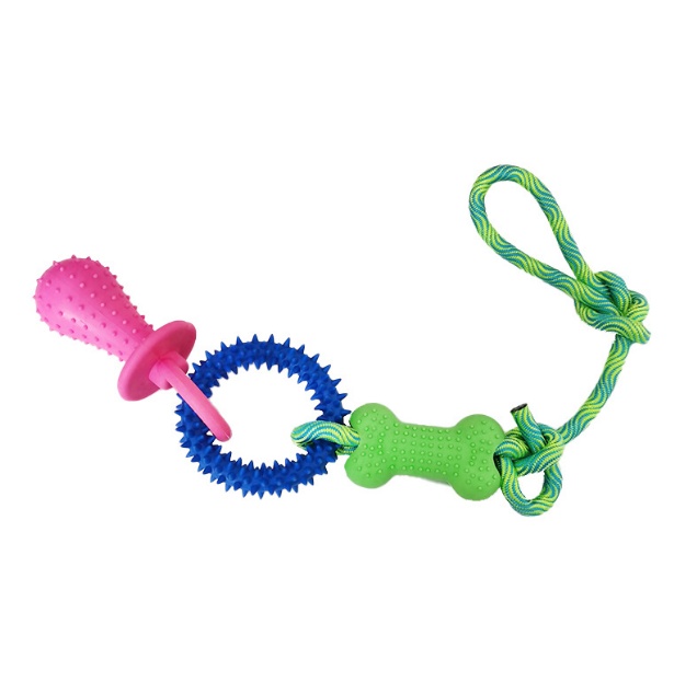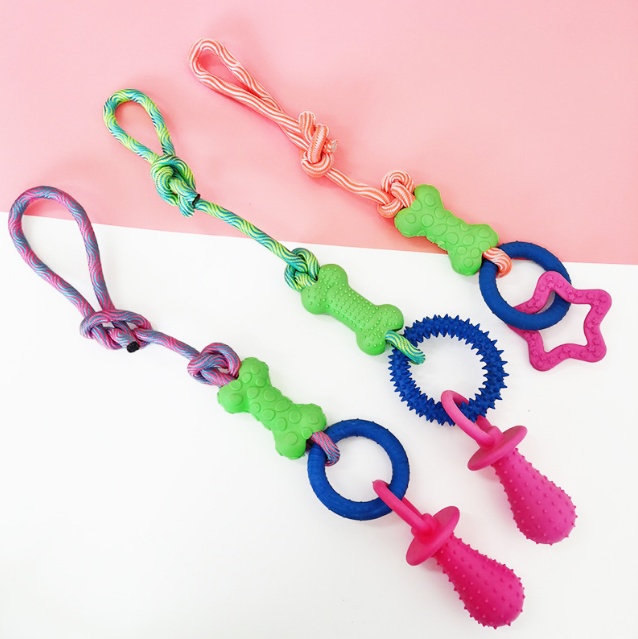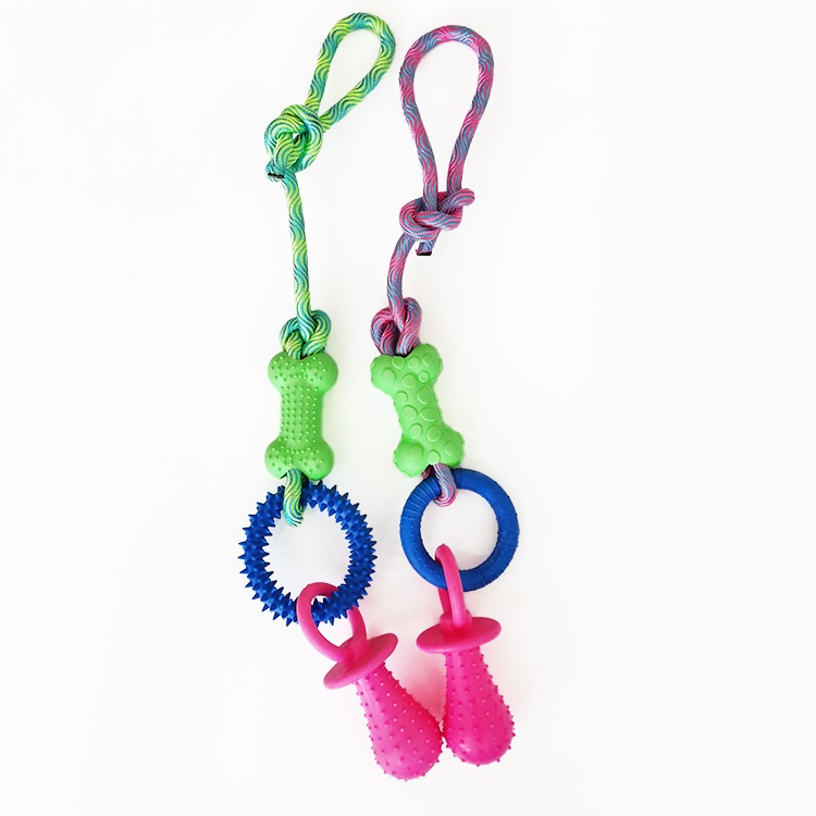 Pet Cotton Knot Molar Teeth Cleaning Bite-Resistant Interactive Dog Bone Biting Head Dog Toy Set
