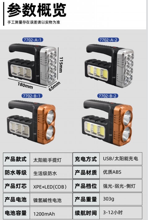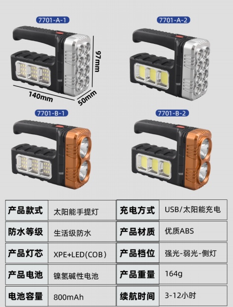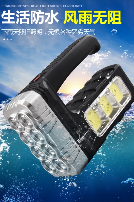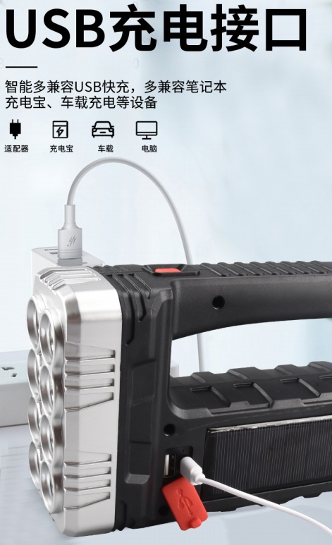 Cross-Border Solar Rechargeable Torch Emergency Led Sidelight Searchlight Strong Light Portable Lamp Wholesale