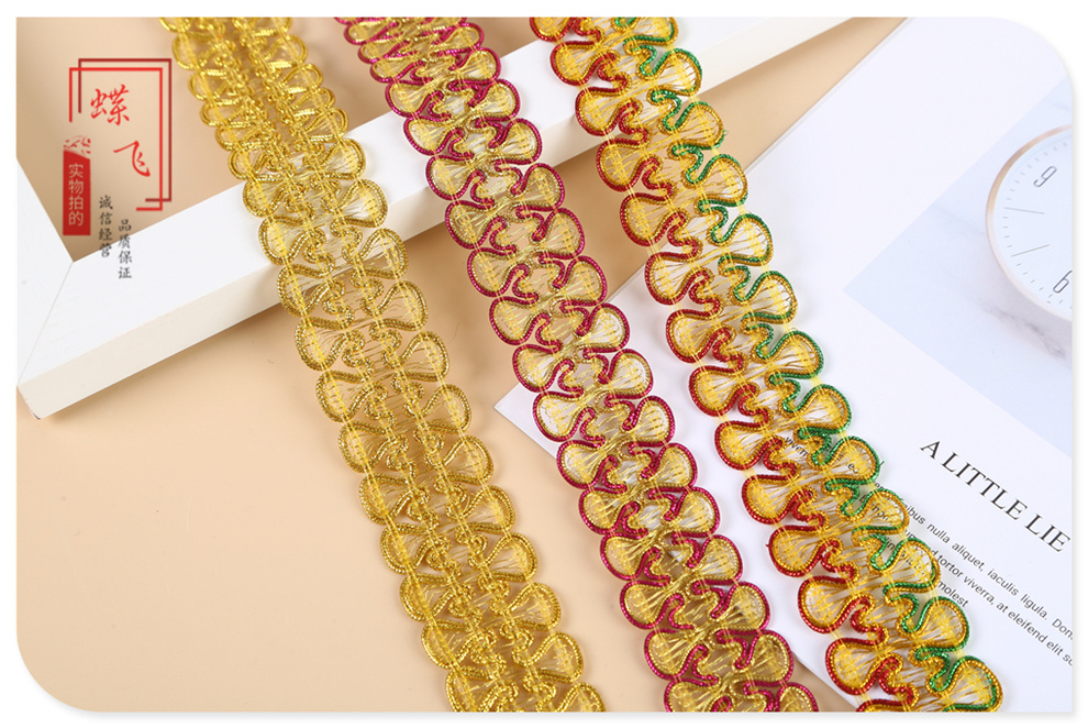 colorful mixed color gold silk lace ethnic style binaural lace clothing accessories decoration diy handmade ribbon