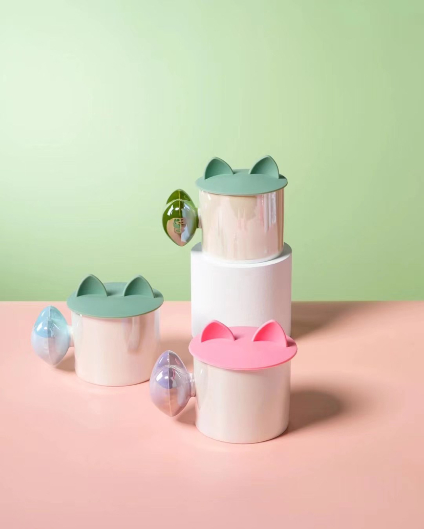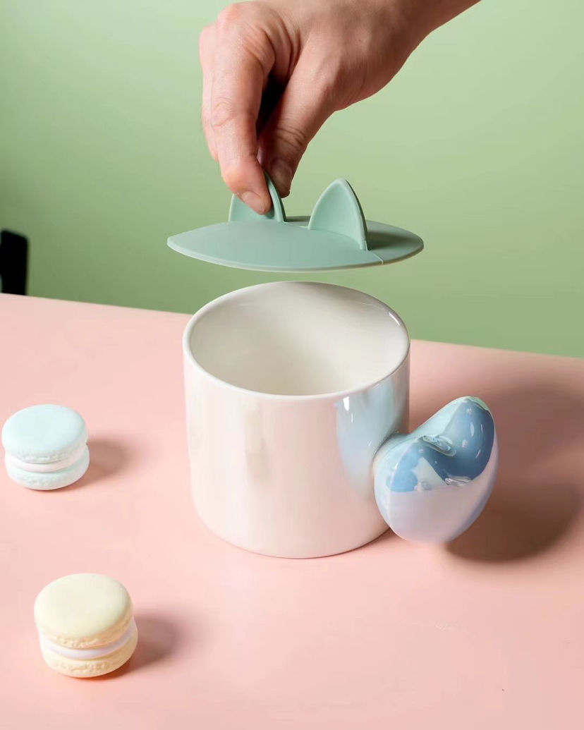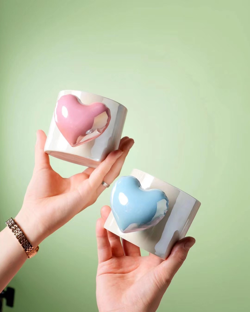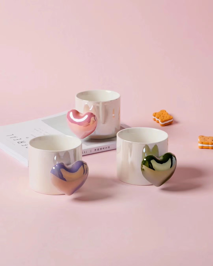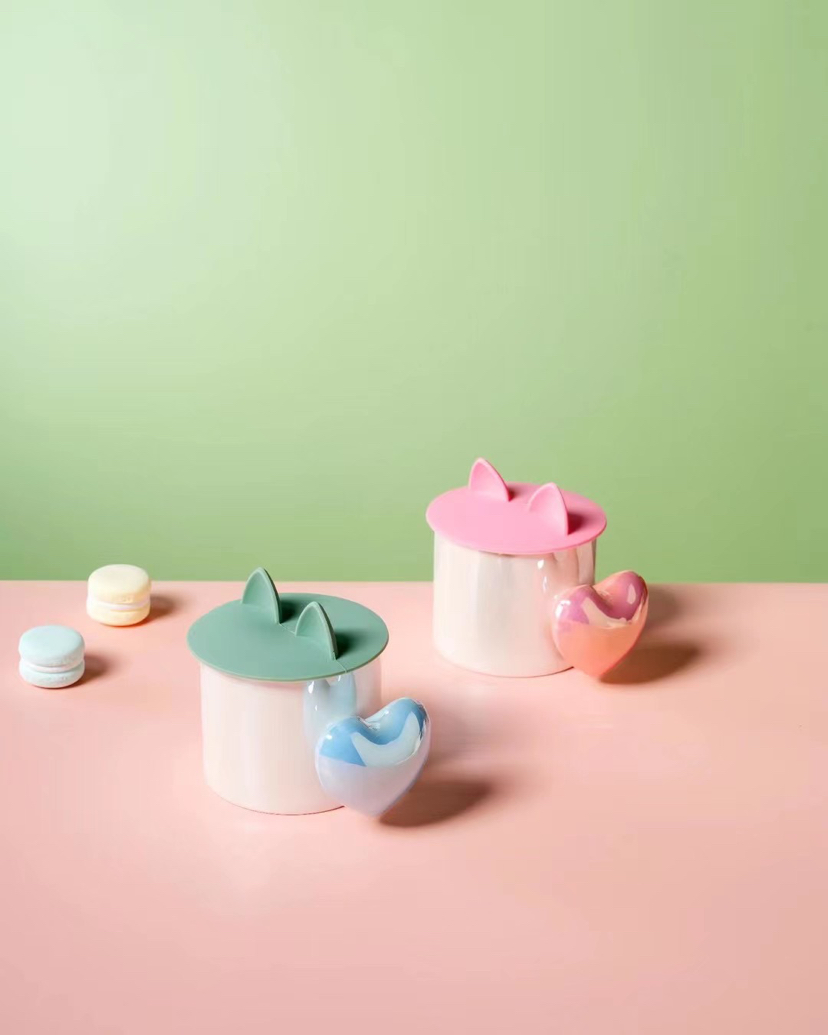 New Pearl Heart Handle Ceramic Cup Silicone Cover Coffee Cup Cute Mug