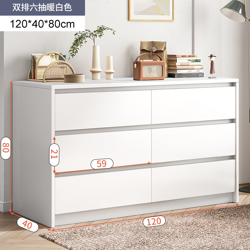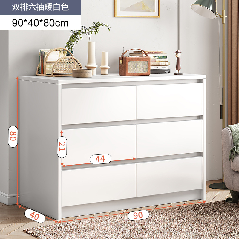 [common style 90cm] double row six drawers-warm white: spacious table top private multi-drawer