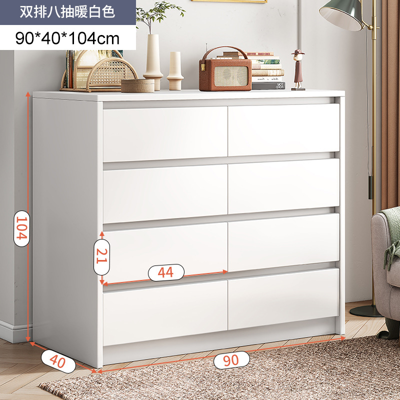 [common style 90cm] double row eight drawers-warm white: spacious table top private multi-drawer