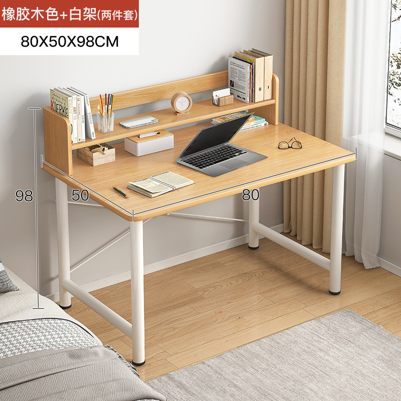 [rubber wood color-upgraded with bookshelf] 80cm: table stand integrated large desktop