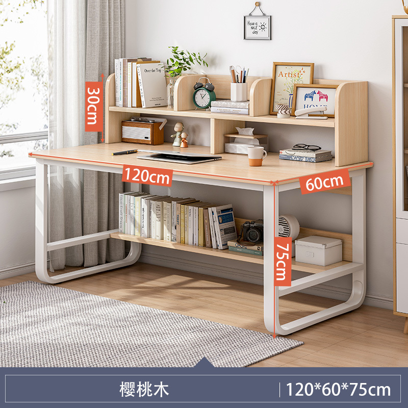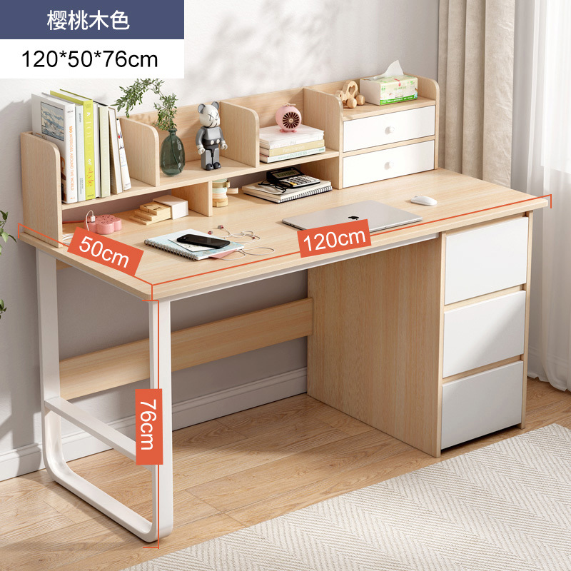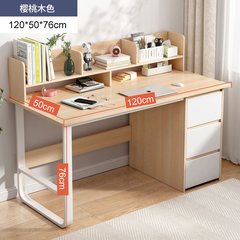 [reinforced three drawers and two cabinet doors] 120*50 with bookshelf cherrywood color: wide desktop thick plate