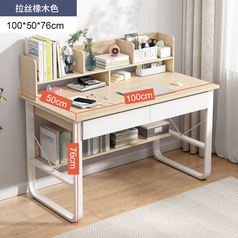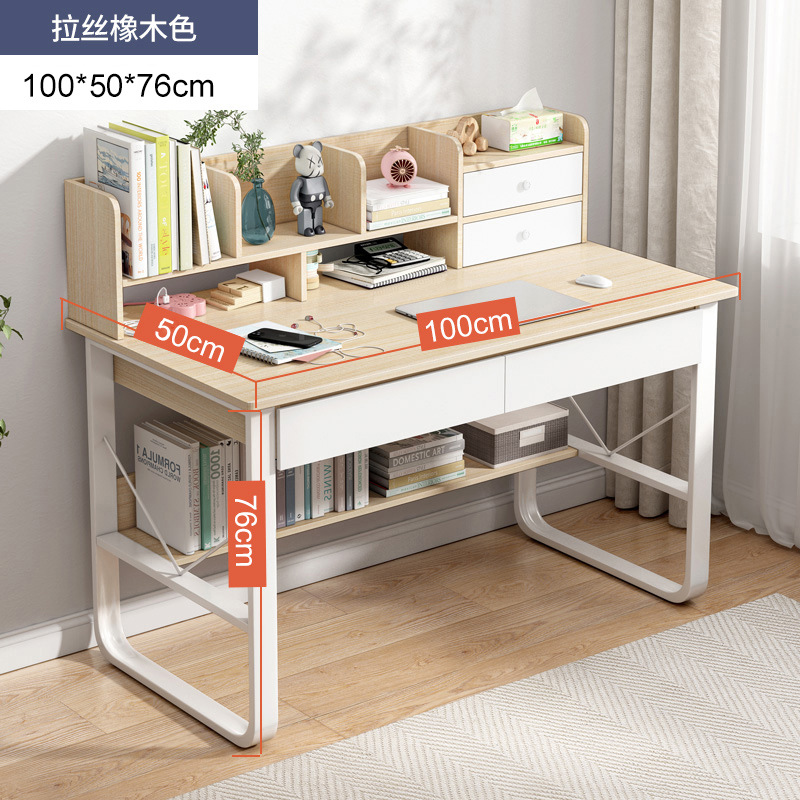 [upgrade double drawer and two cabinet doors] 100*50 brushed oak color: wide desktop thick plate