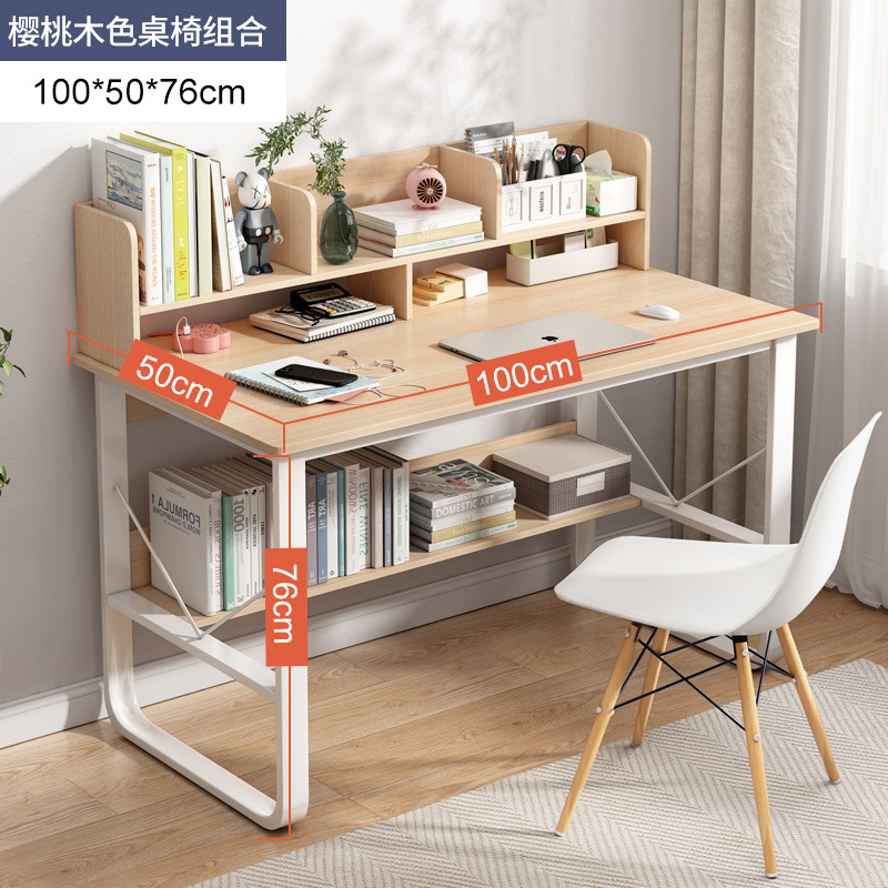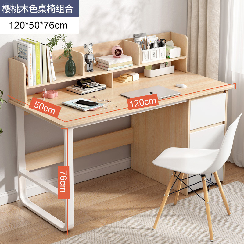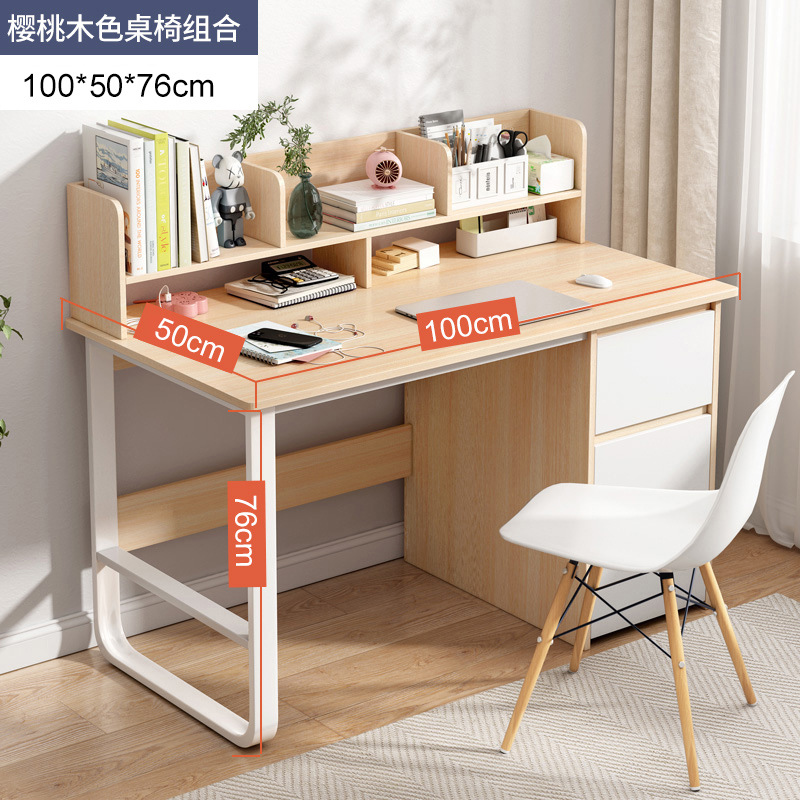 [reinforced three drawers] 100*50 with bookshelf cherrywood colors + chair: large desktop thick plate